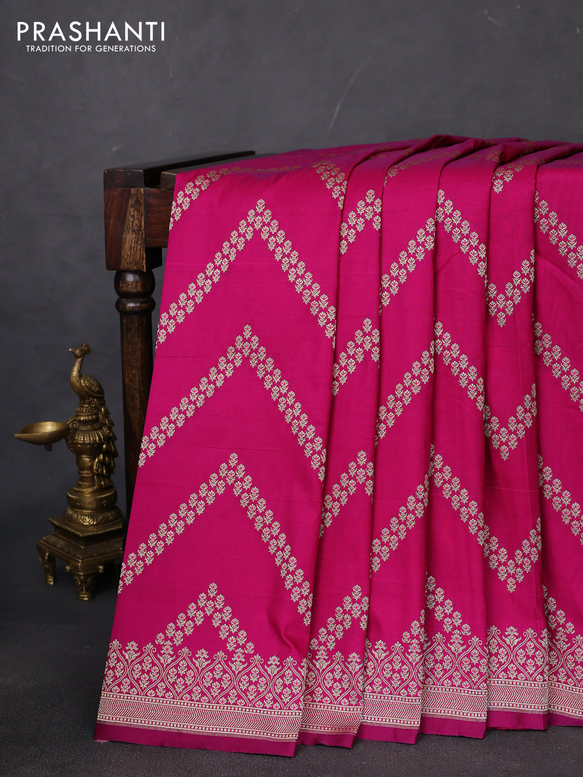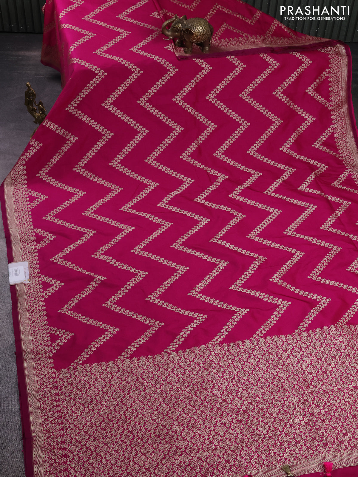 Banarasi semi mushru silk saree dark magenta pink with allover zig zag zari weaves and zari woven border