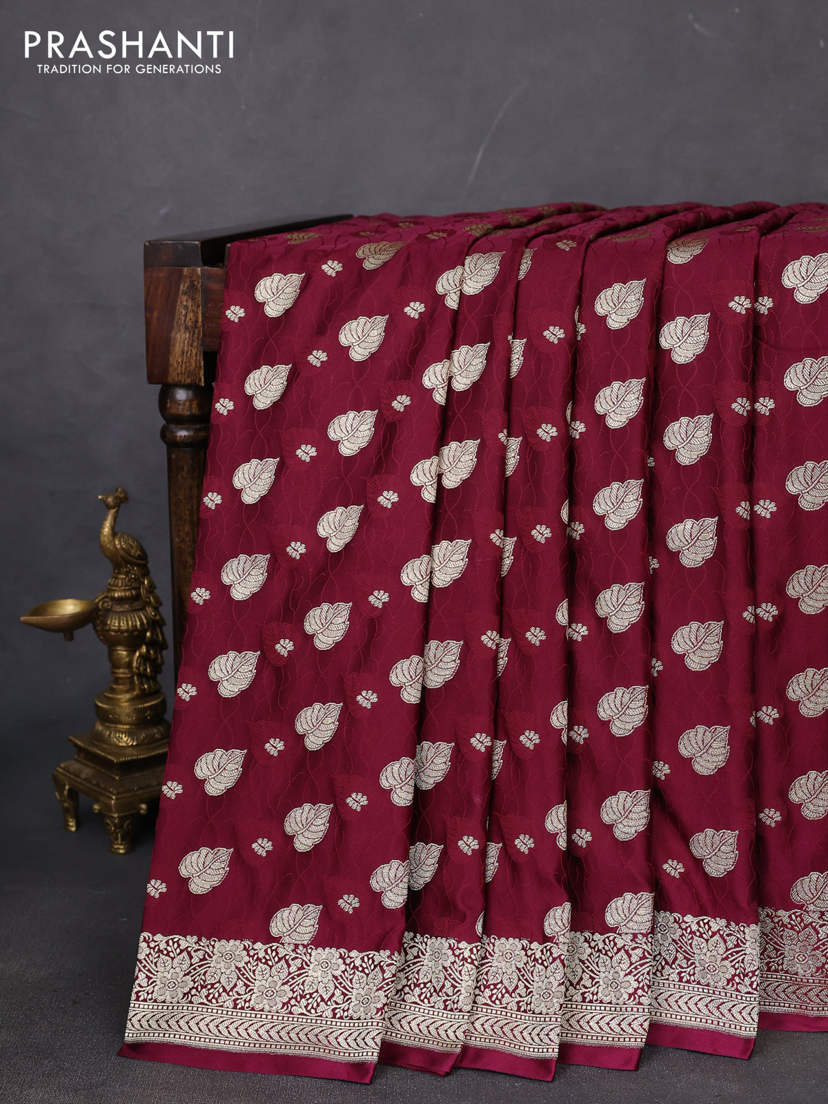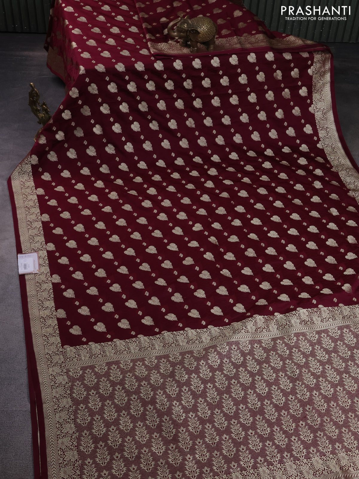 Banarasi semi mushru silk saree deep maroon with allover thread & zari weaves and zari woven border