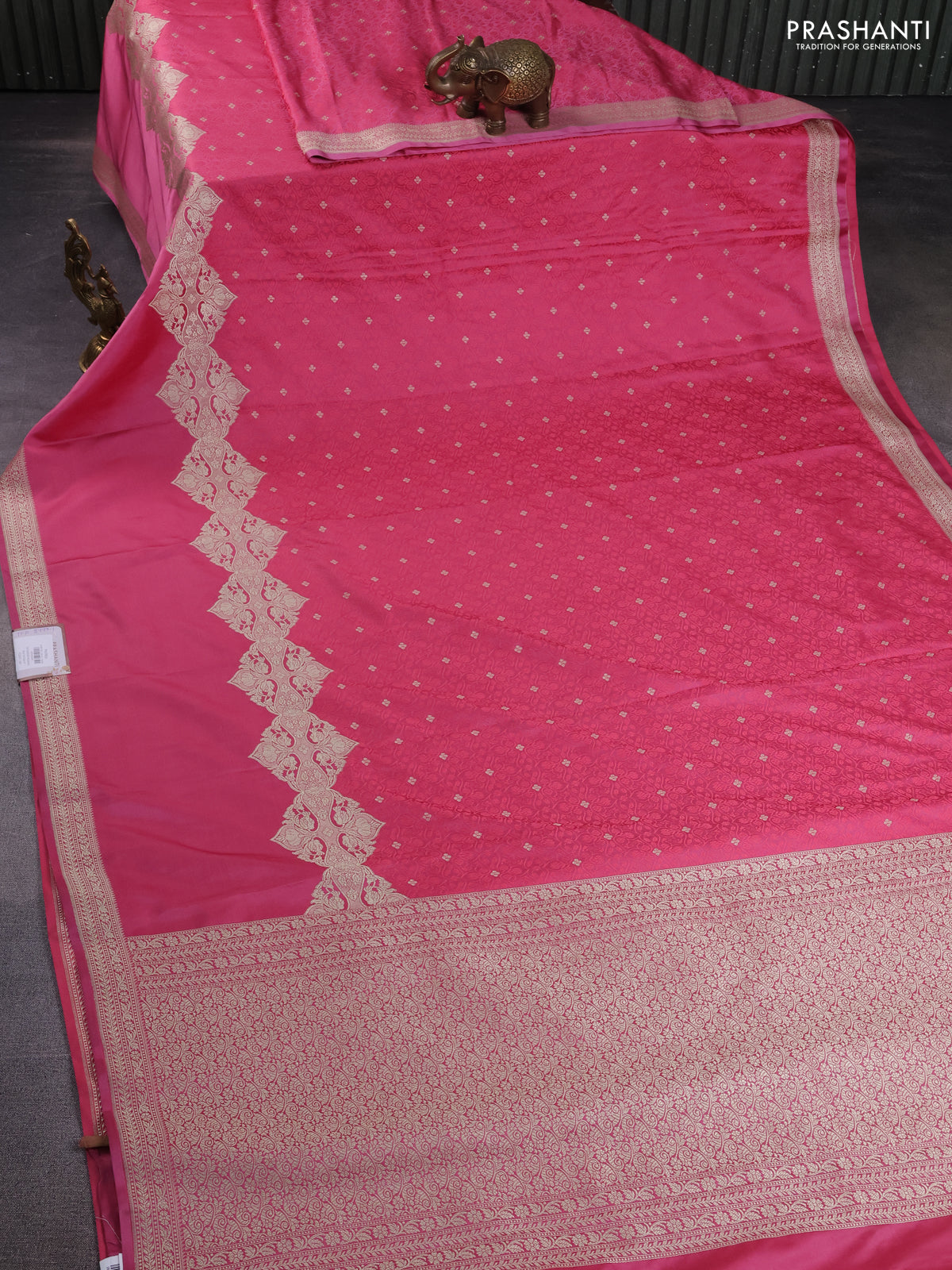 Banarasi semi mushru silk saree pink shade with allover self emboss & zari buttas and rettapet zari woven border