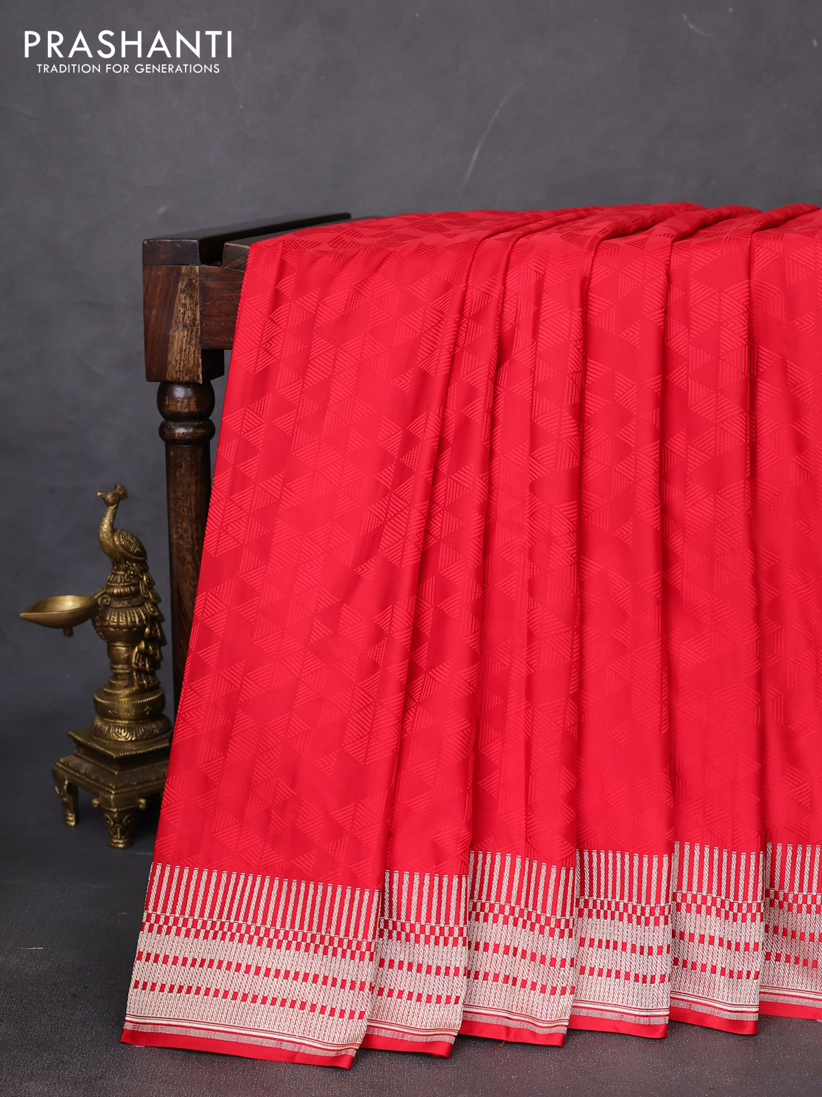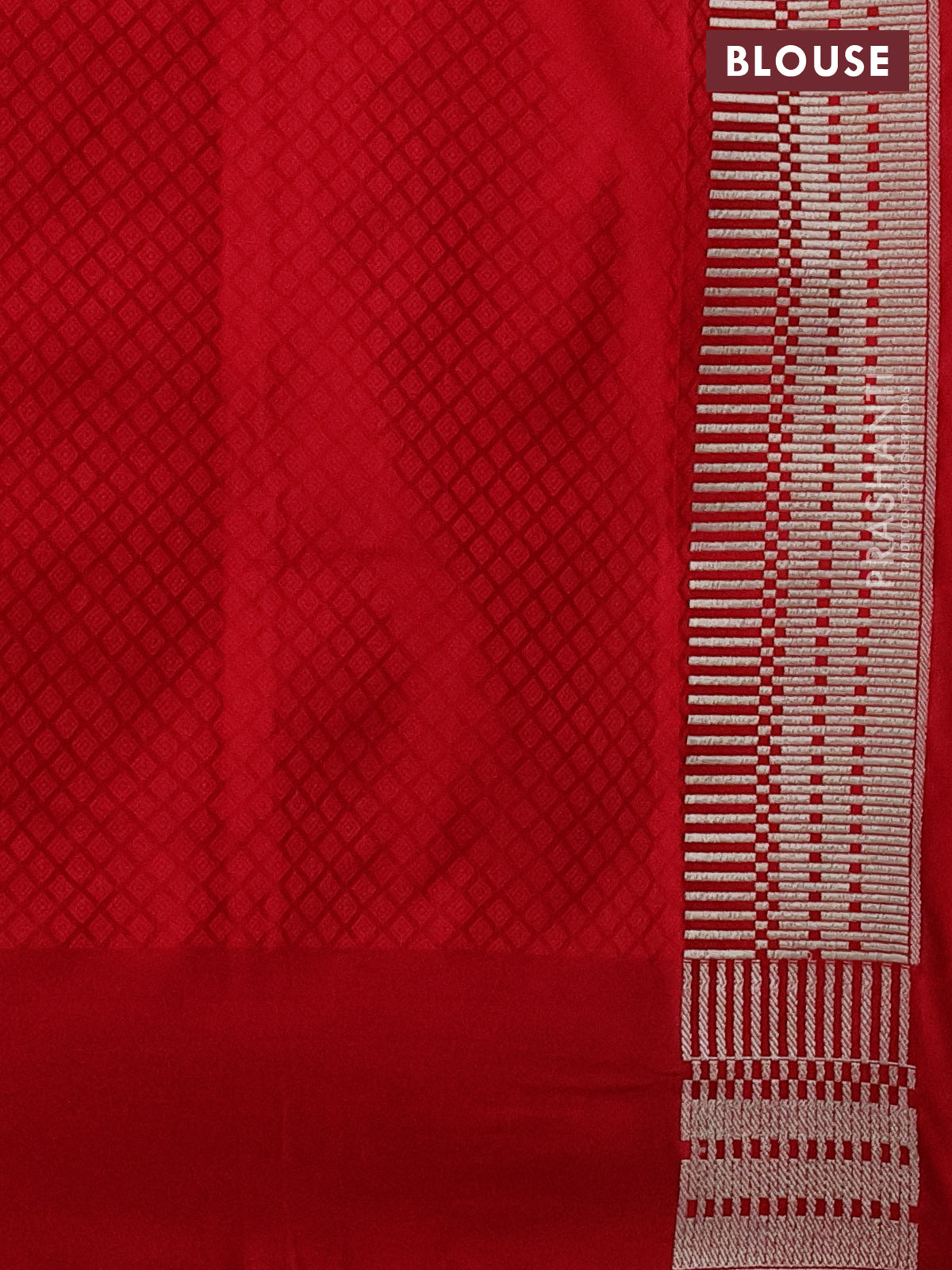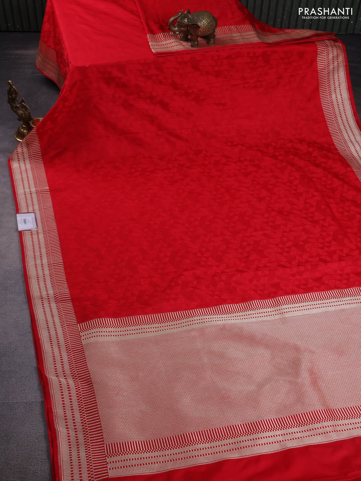 Banarasi semi mushru silk saree red with allover self emboss and zari woven border