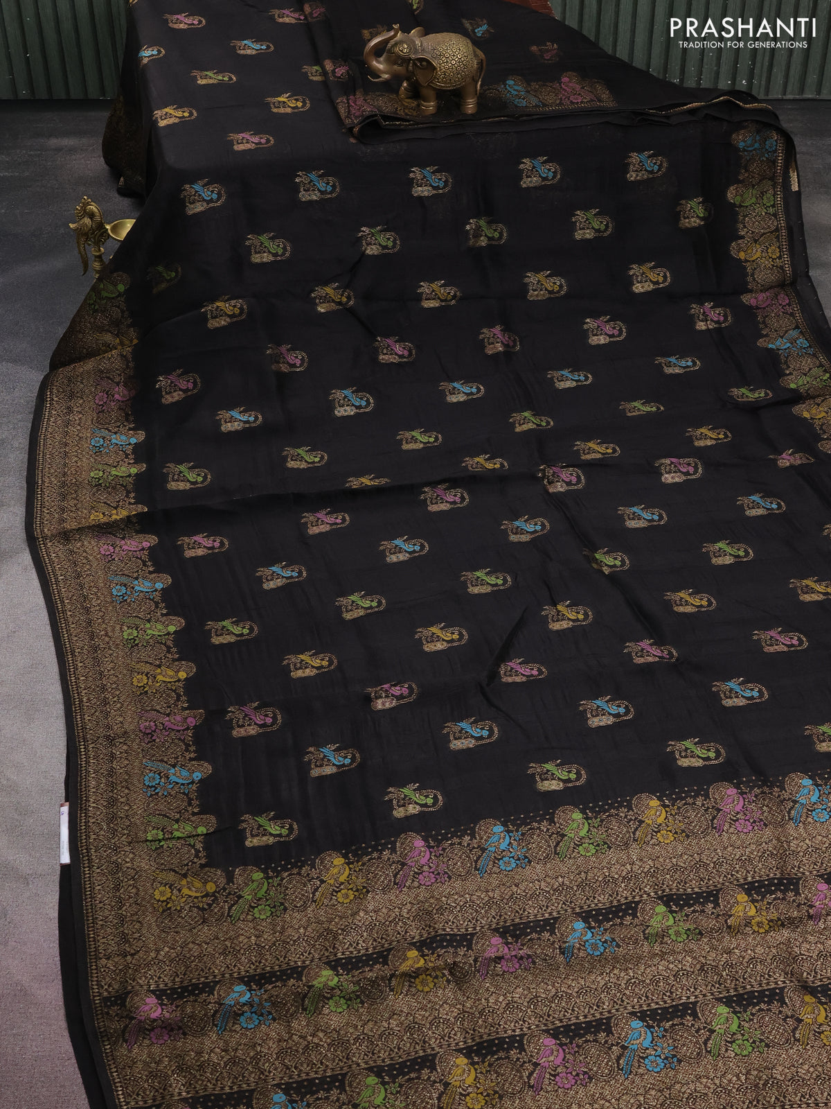 Banarasi semi raw silk saree black with thread & zari woven buttas and woven border
