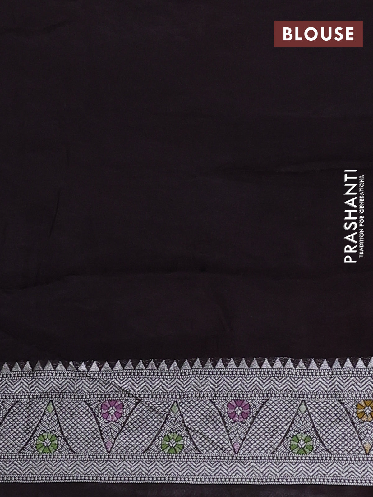 Banarasi semi raw silk saree coffee brown with allover silver zari woven paithani weaves and silver zari woven border