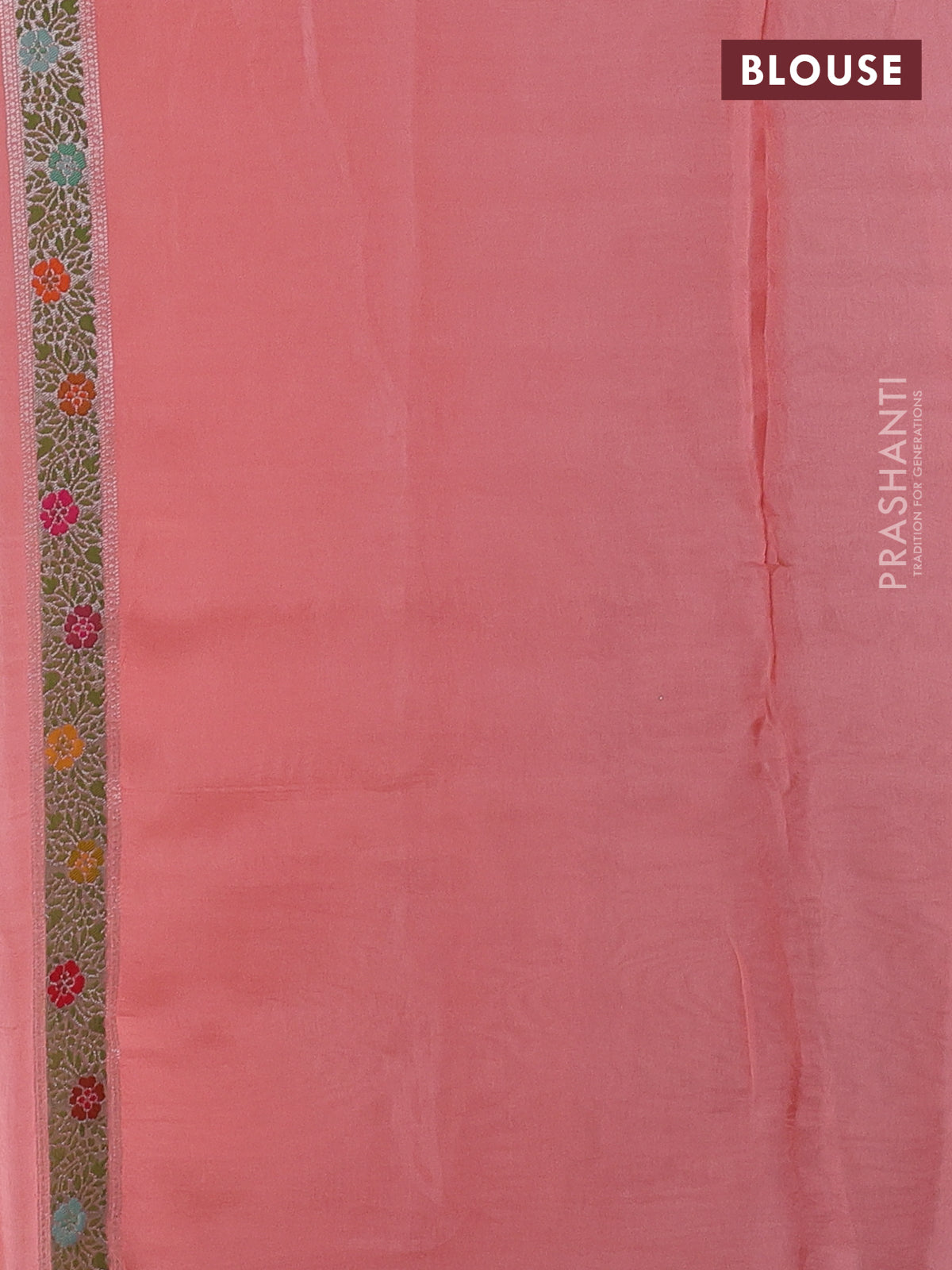 Banarasi semi raw silk saree peach shade with allover silver zari woven paithani weaves and woven border