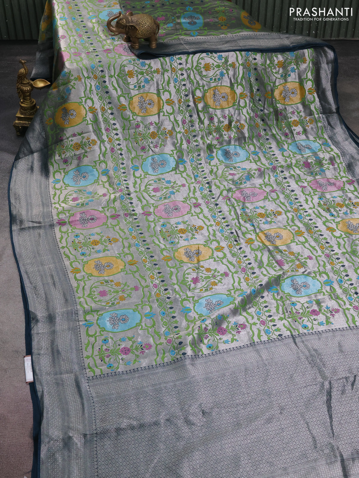 Banarasi semi raw silk saree peacock blue with allover zari woven paithani weaves and zari woven border