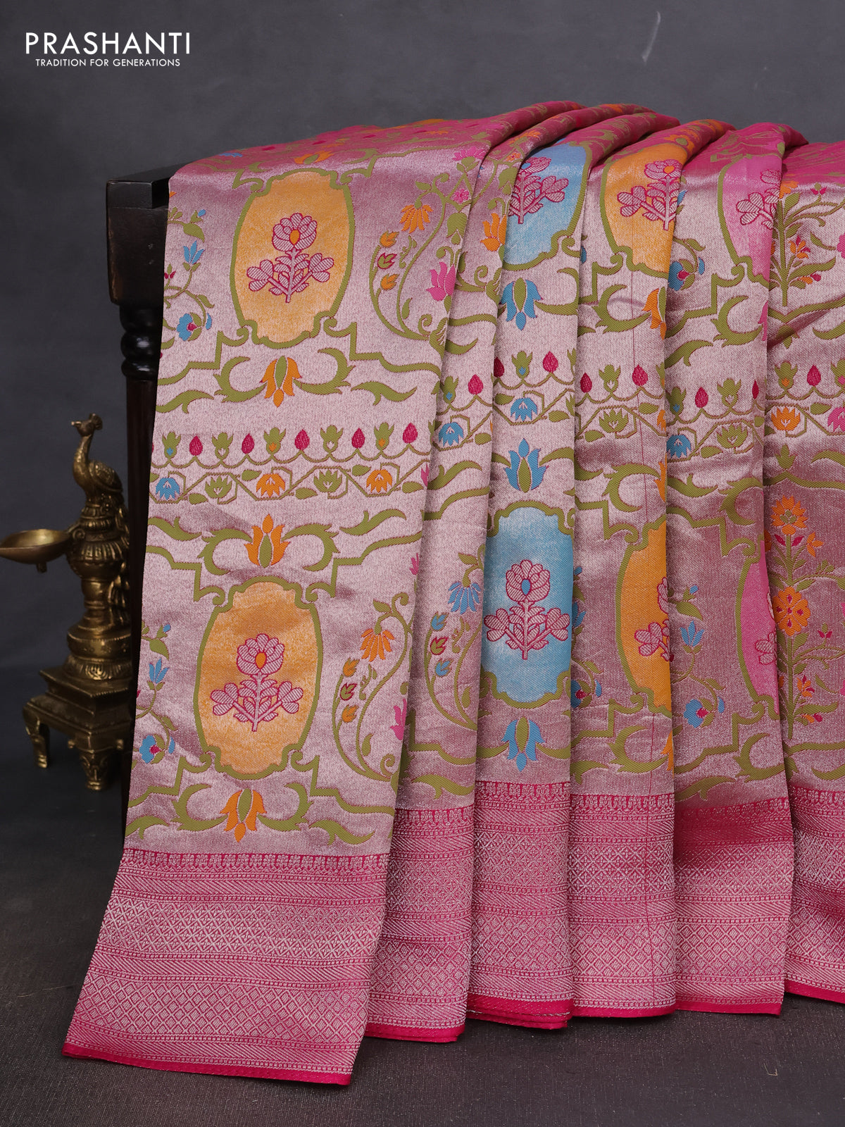 Banarasi semi raw silk saree pink with allover zari woven paithani weaves and zari woven border
