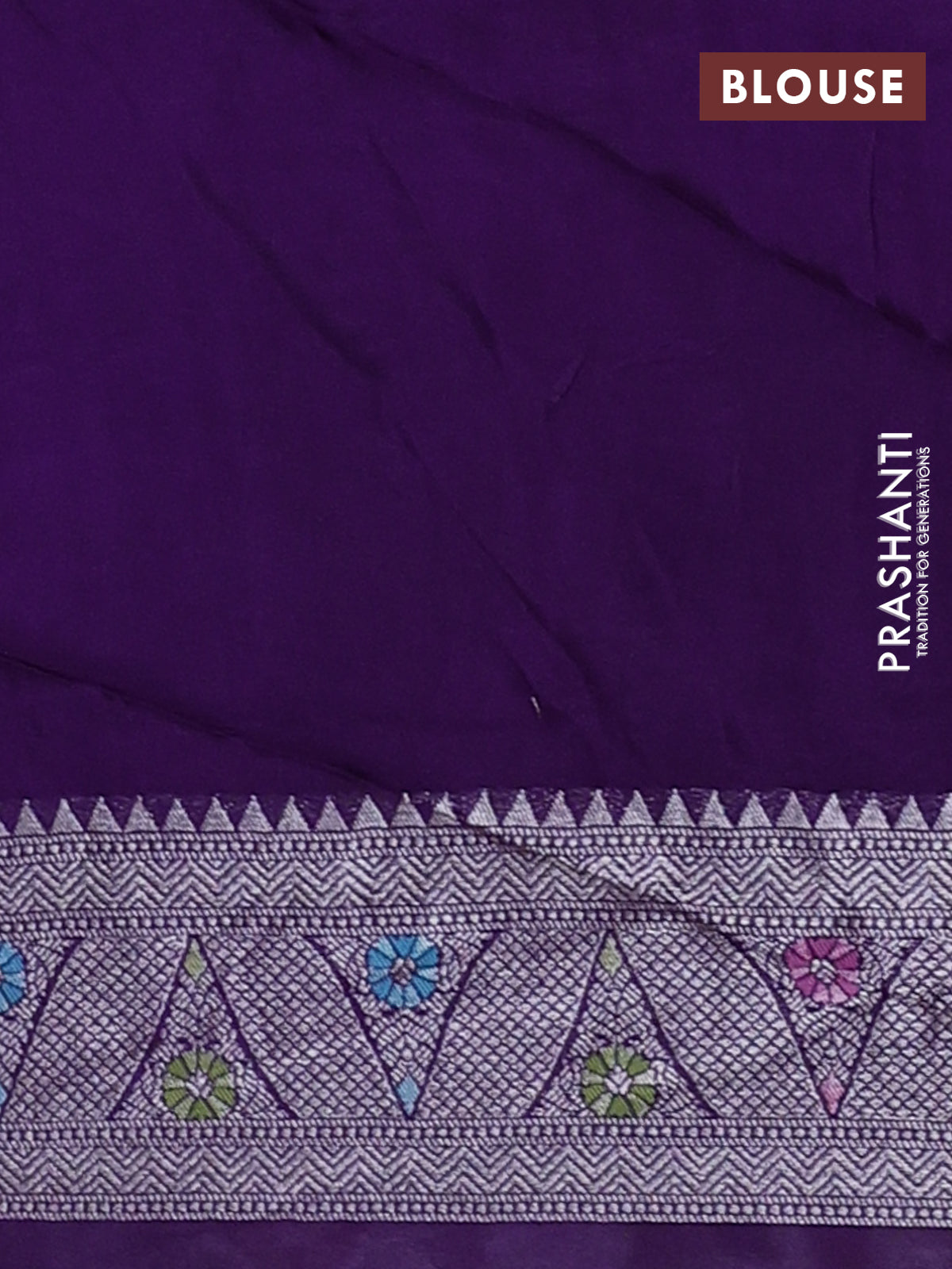 Banarasi semi raw silk saree violet with allover silver zari woven paithani weaves and silver zari woven border