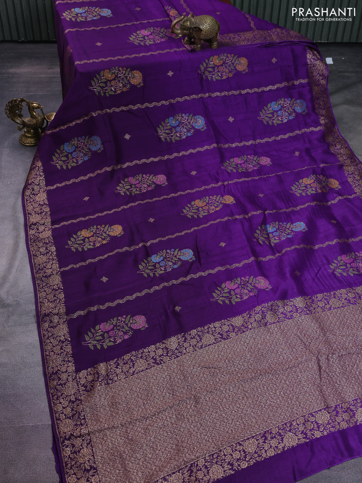 Banarasi semi raw silk saree violet with allover thread & zari weaves and woven border