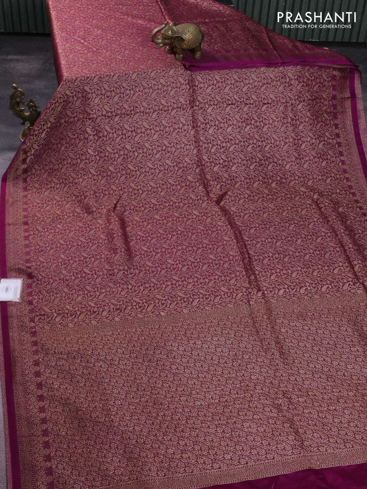 Banarasi semi silk saree deep purple with allover thread & zari weaves and woven border