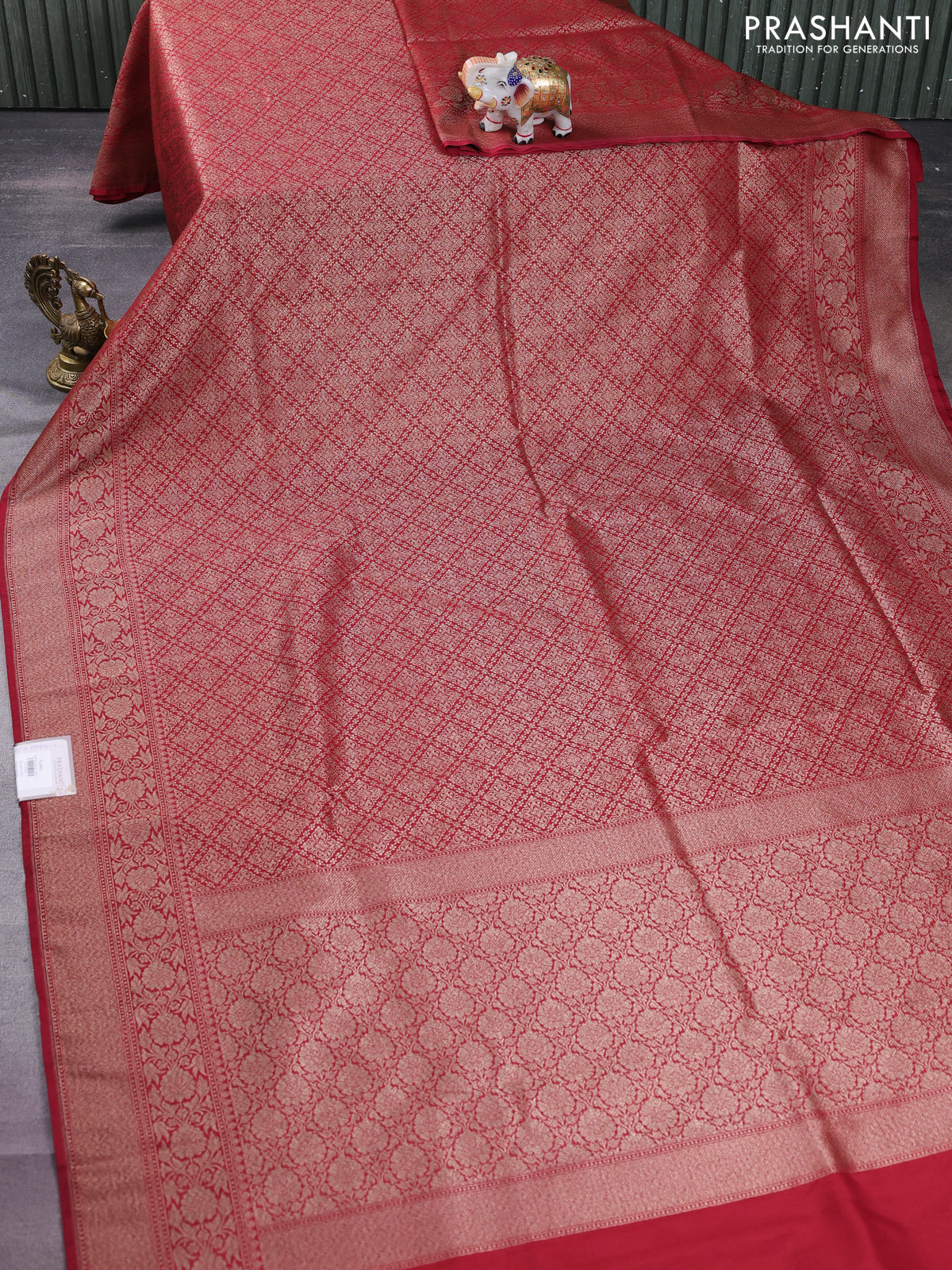 Banarasi semi silk saree maroon with allover thread & zari weaves and woven border