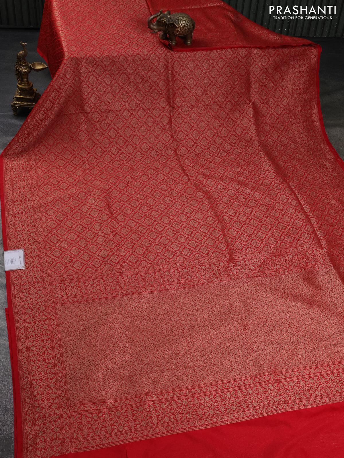 Banarasi semi silk saree red with allover thread & zari weaves and woven border
