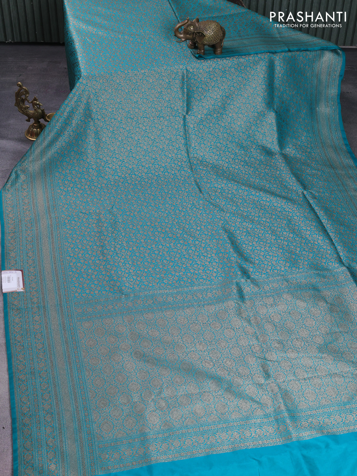 Banarasi semi silk saree teal blue with allover thread & zari weaves and woven border