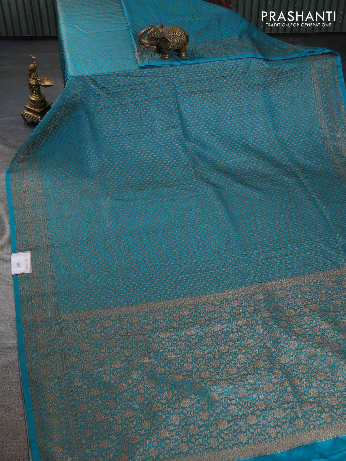 Banarasi semi silk saree teal blue with allover thread & zari woven butta weaves and woven border