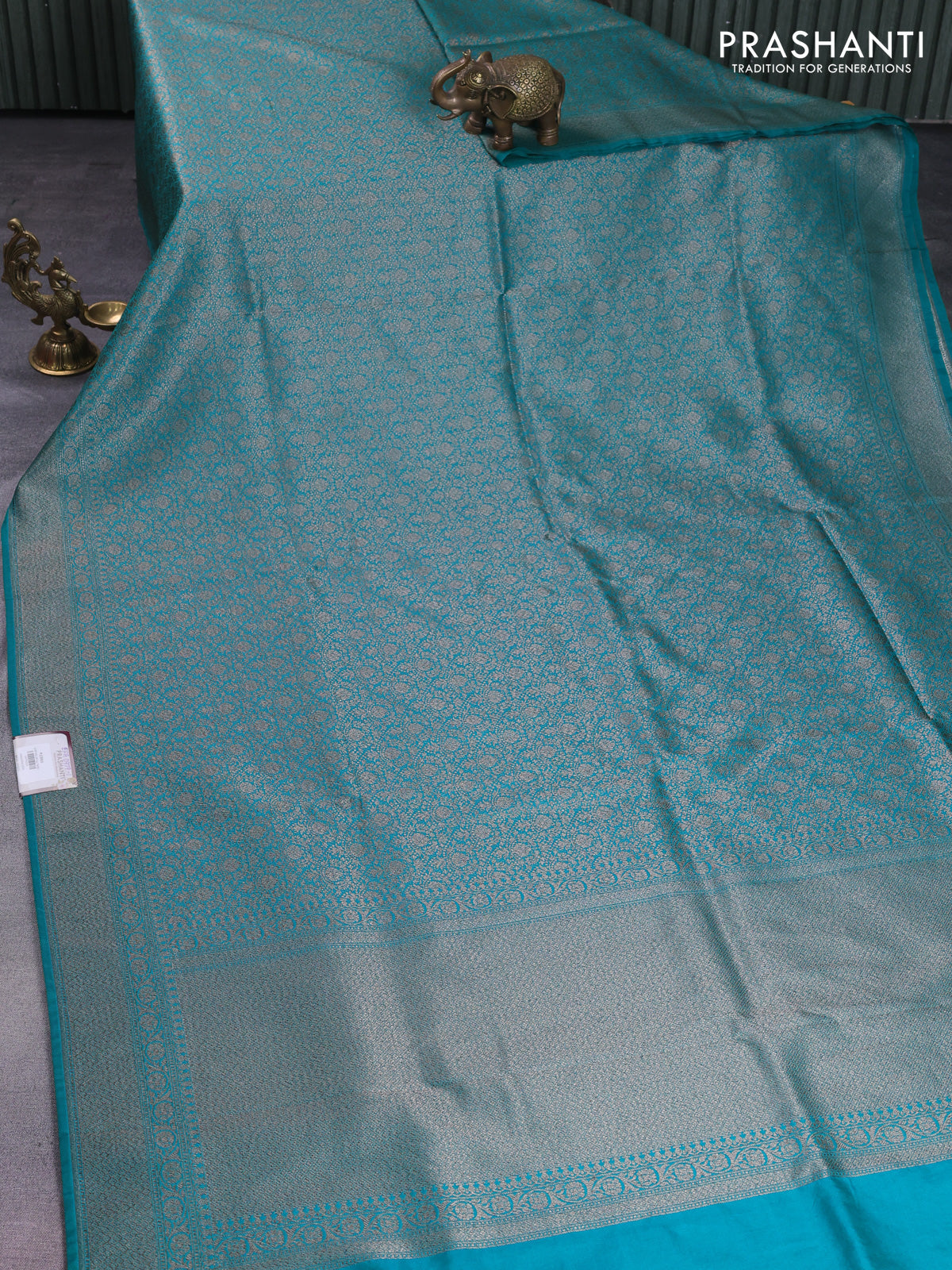 Banarasi semi silk saree teal green with allover thread & zari weaves and woven border