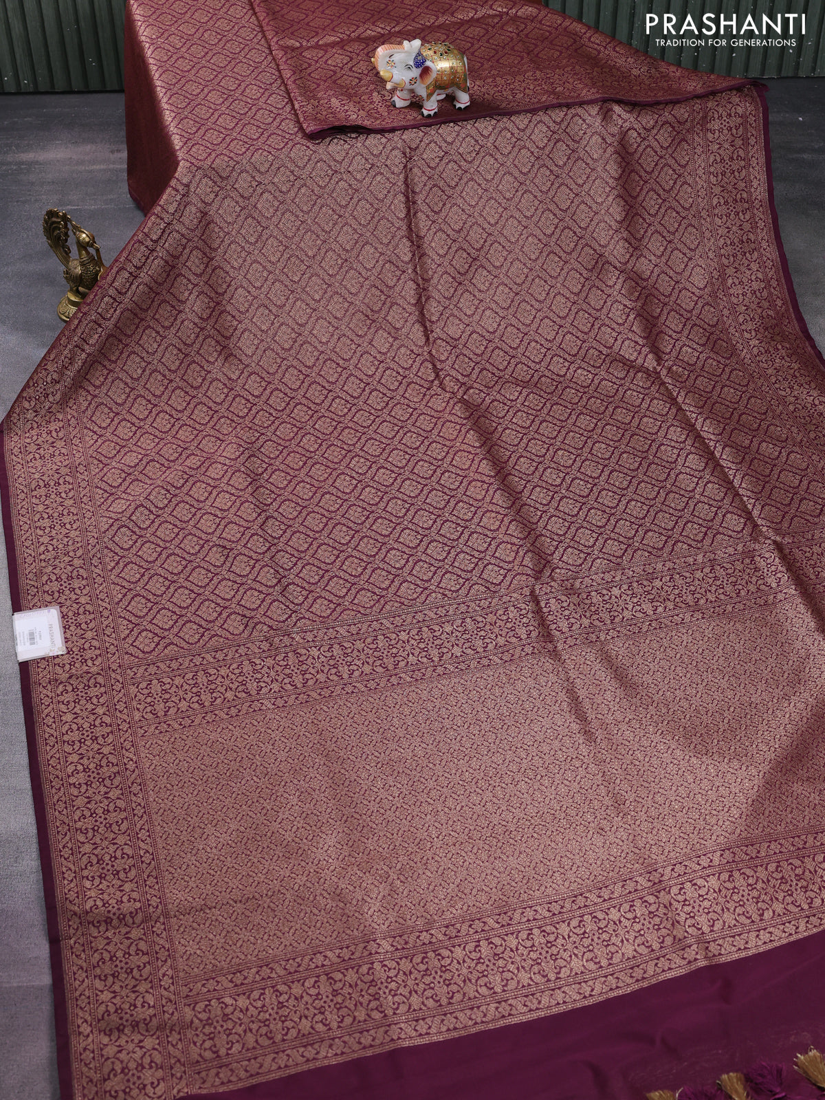 Banarasi semi silk saree wine shade with allover thread & zari weaves and woven border