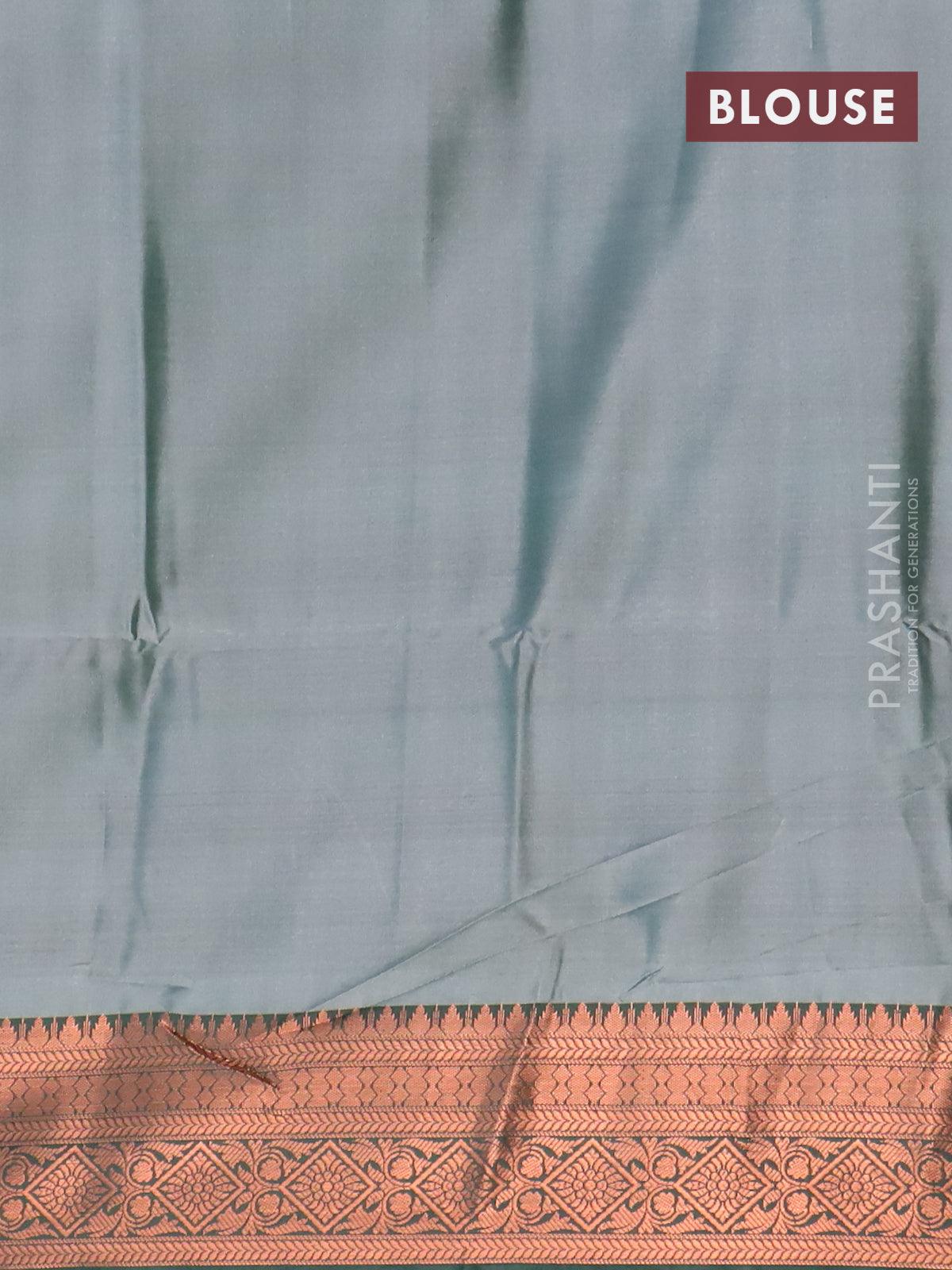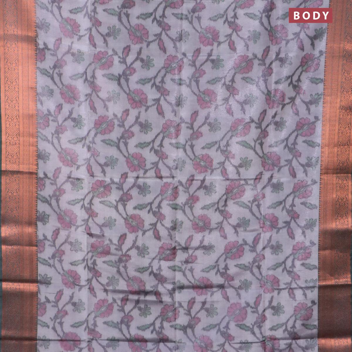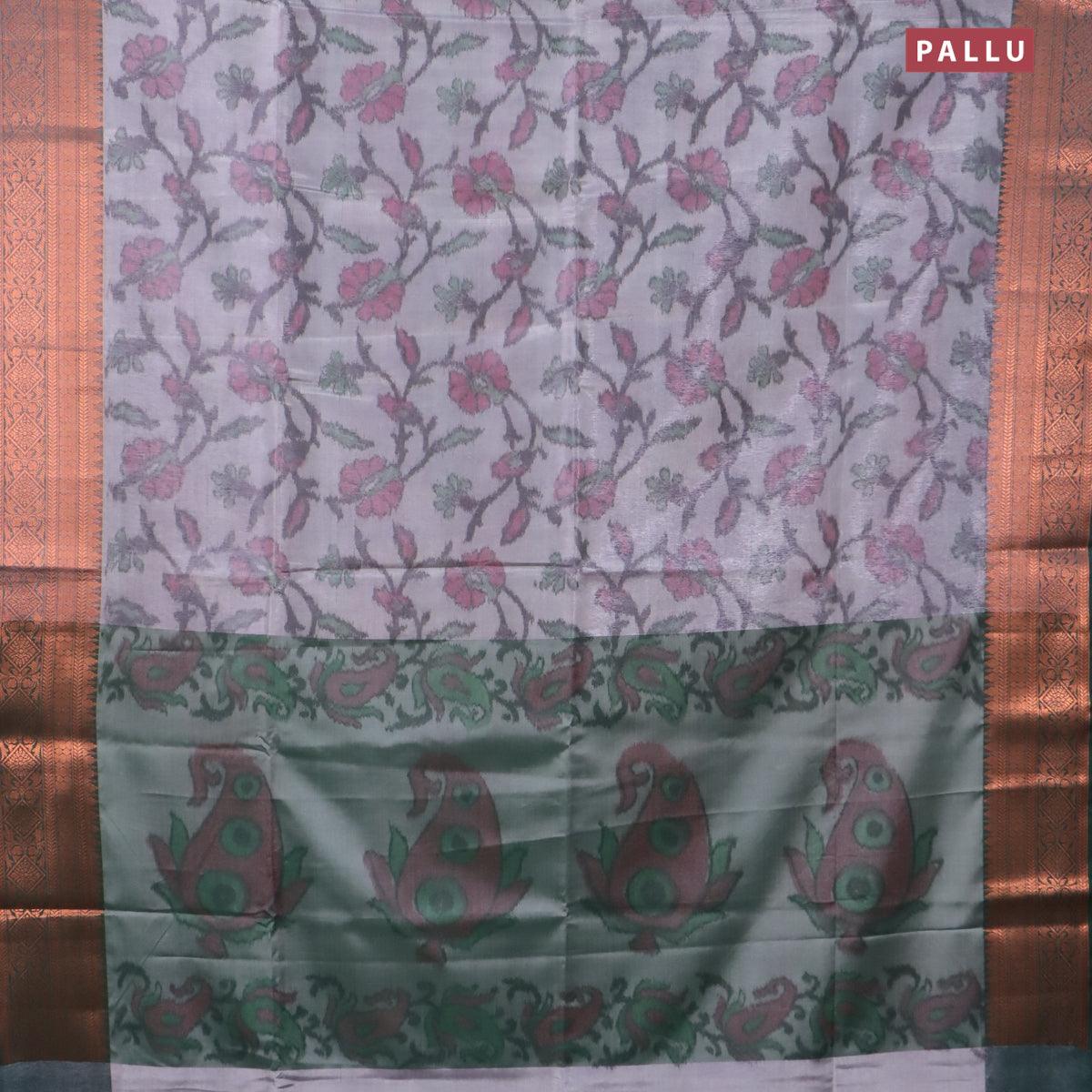 Banarasi semi tussar saree grey and green with allover ikat weaves and copper zari woven border