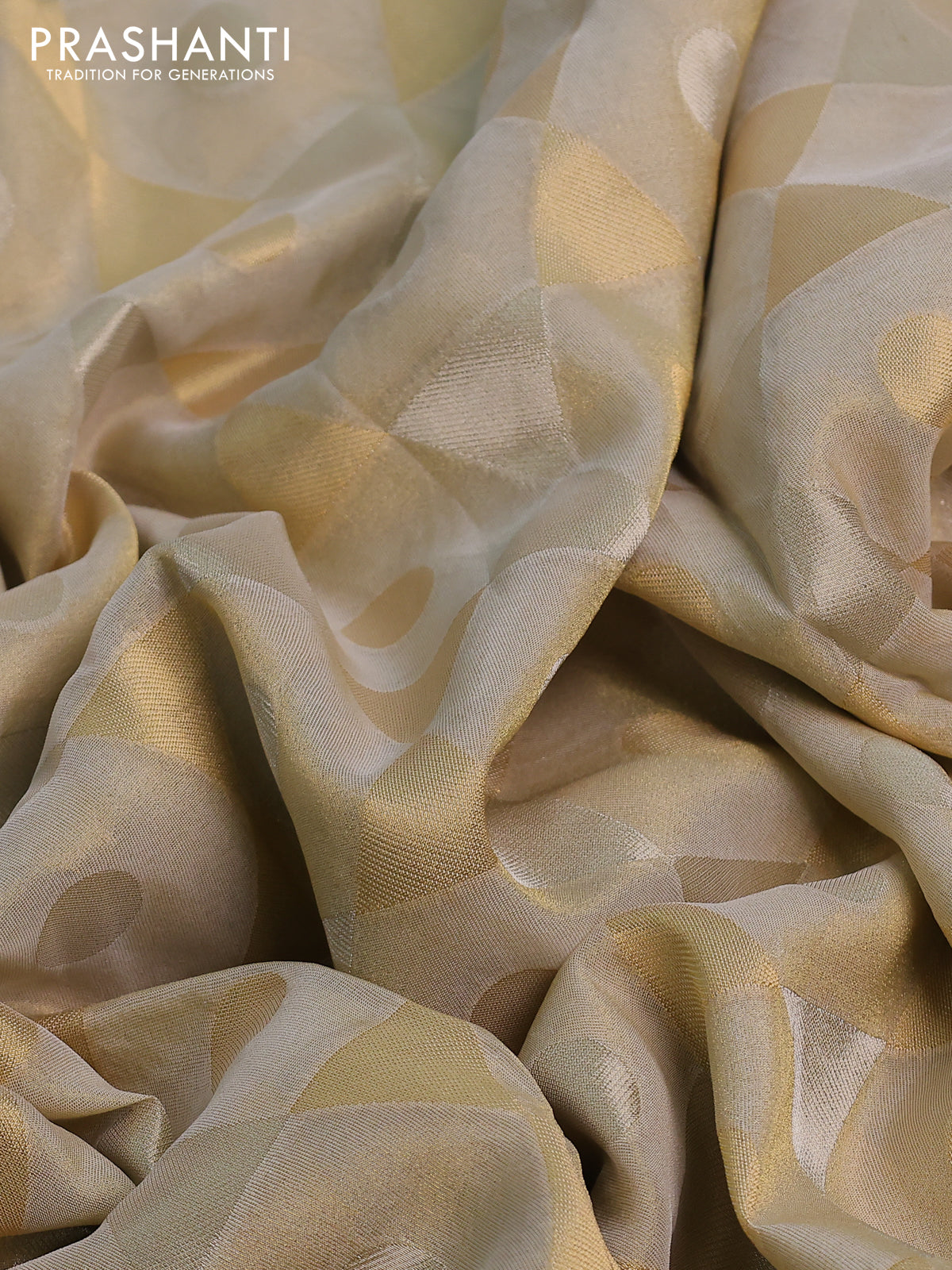 Banarasi tissue saree beige and mustard yellow with allover zari woven geometric wevaes and lace work border
