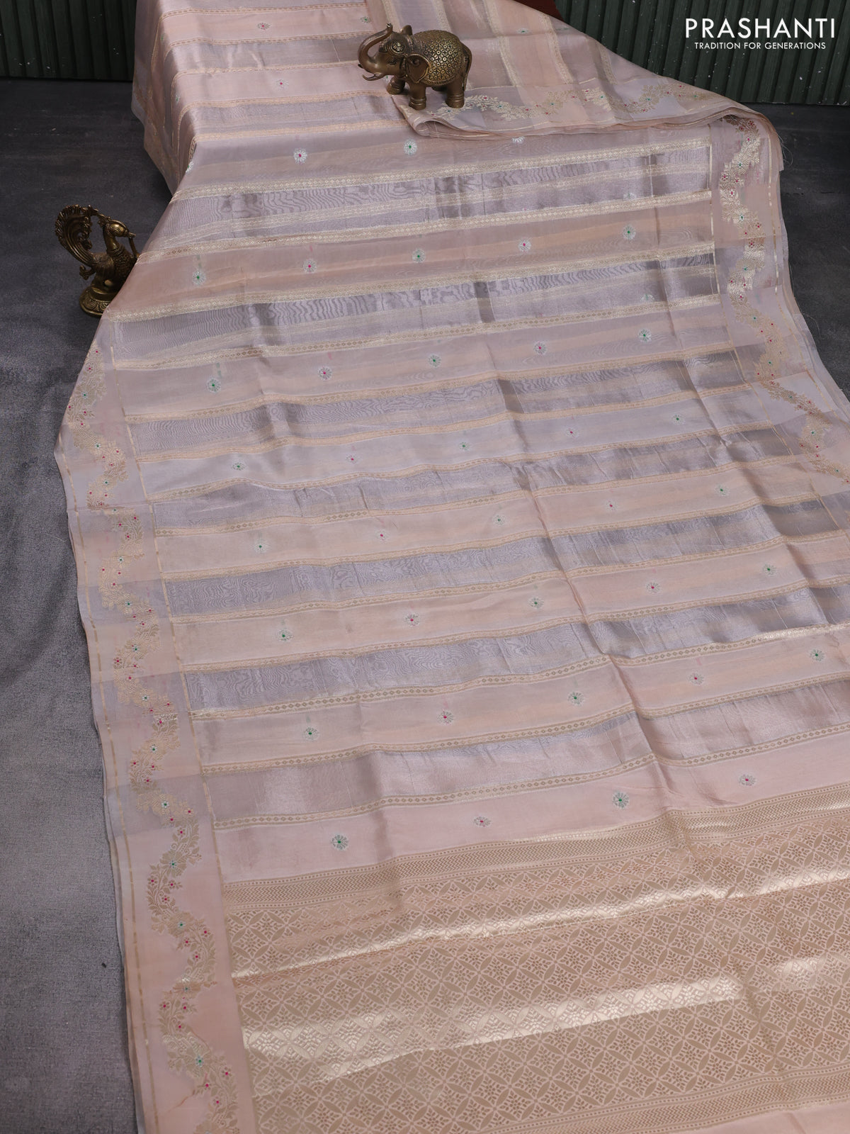 Banarasi tissue semi silk saree pastel peach shade with zari weaves & buttas and zari woven border