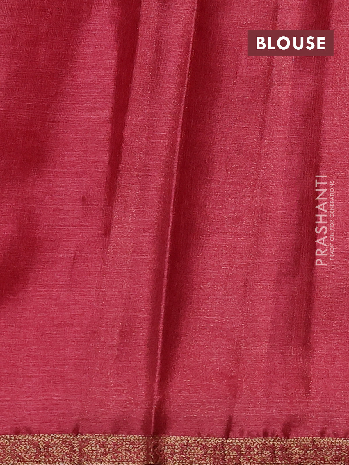 Material : Banarasi Tussar Silk SILK MARK CERTIFIED Blouse : Attached Length of saree : 6.2 mts (5.5 mts saree... Read more