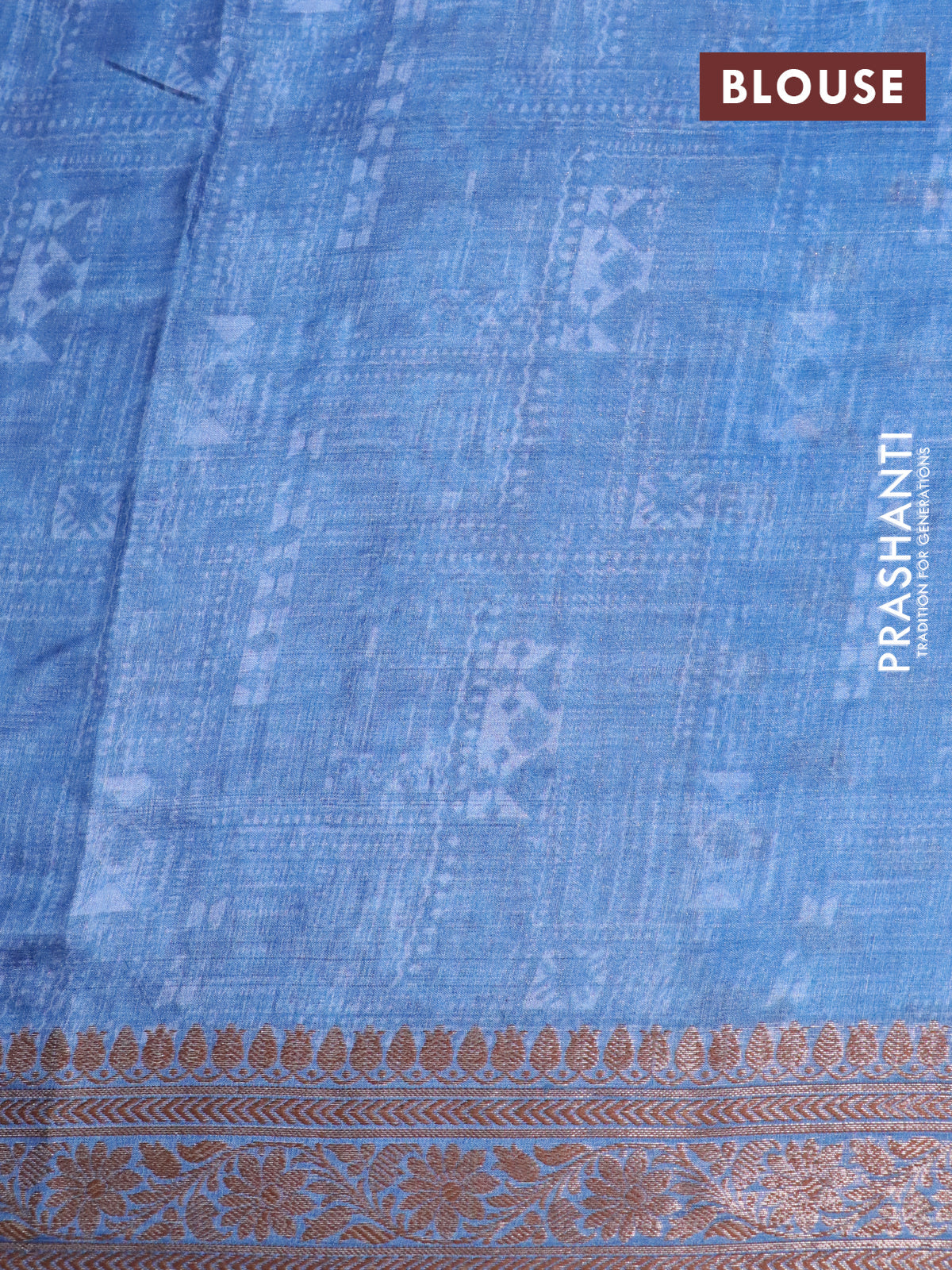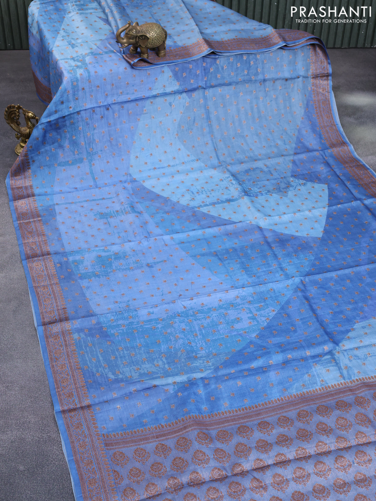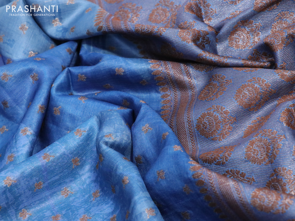 Banarasi tussar silk saree blue shade with woven buttas & allover prints and woven border