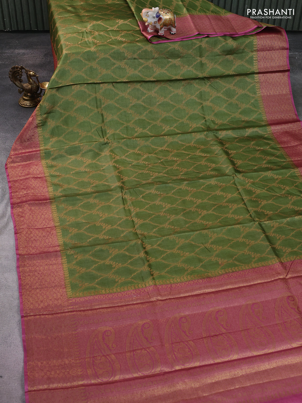 Banarasi tussar silk saree green and pink with allover thread & zari woven buttas and woven border