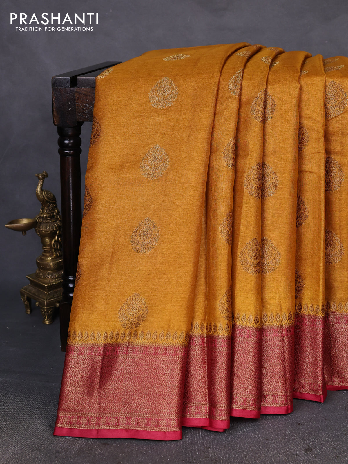 Pure Banarasi Tussar Silks by Prashanti embody heritage weaving with a rich texture and graceful finish. Crafted with fine zari details, these sarees reflect classic appeal.