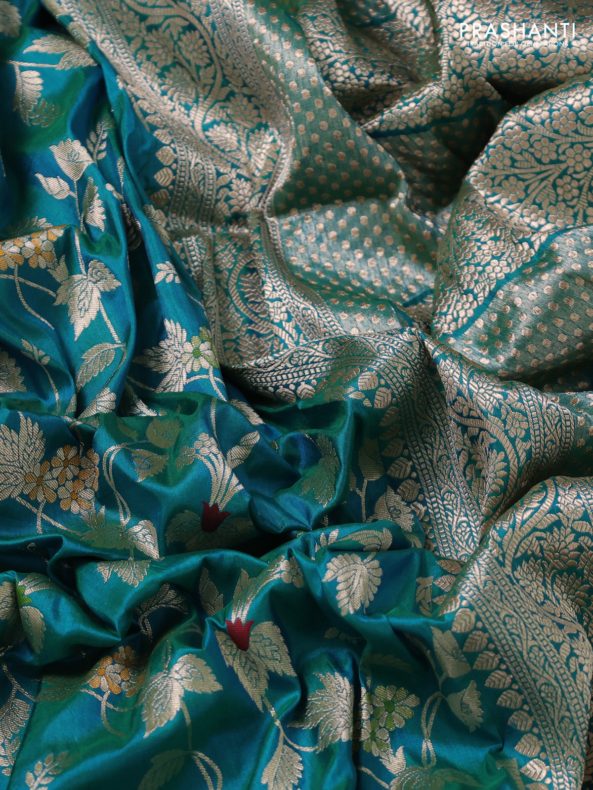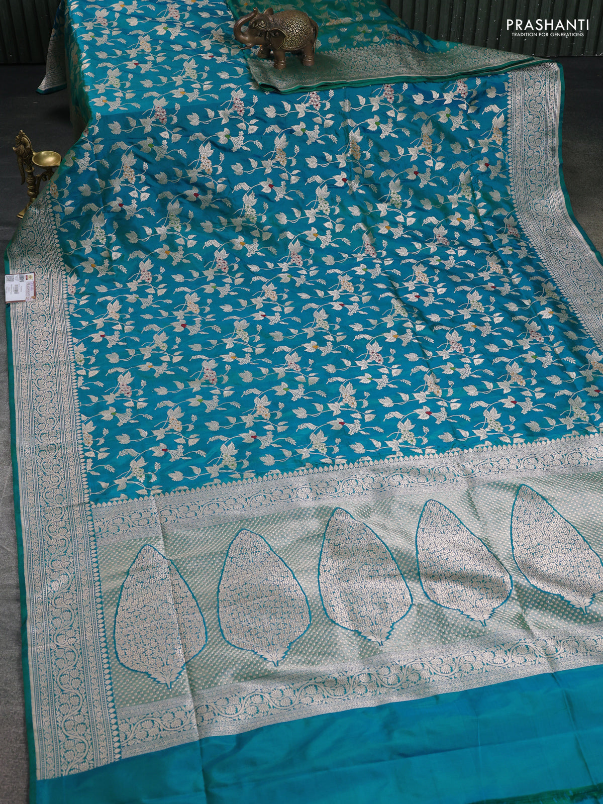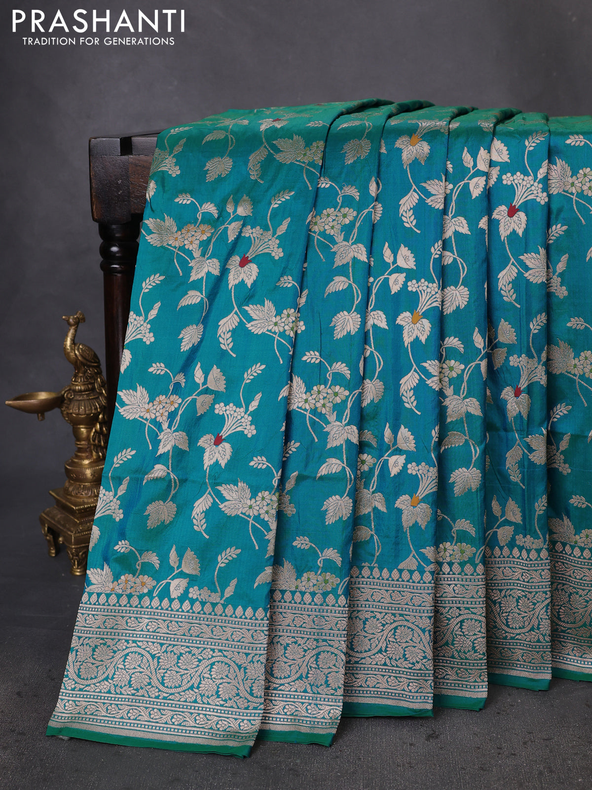 Banarasi uppada silk saree dual shade of cs blue with allover zari woven brocade weaves and zari woven border