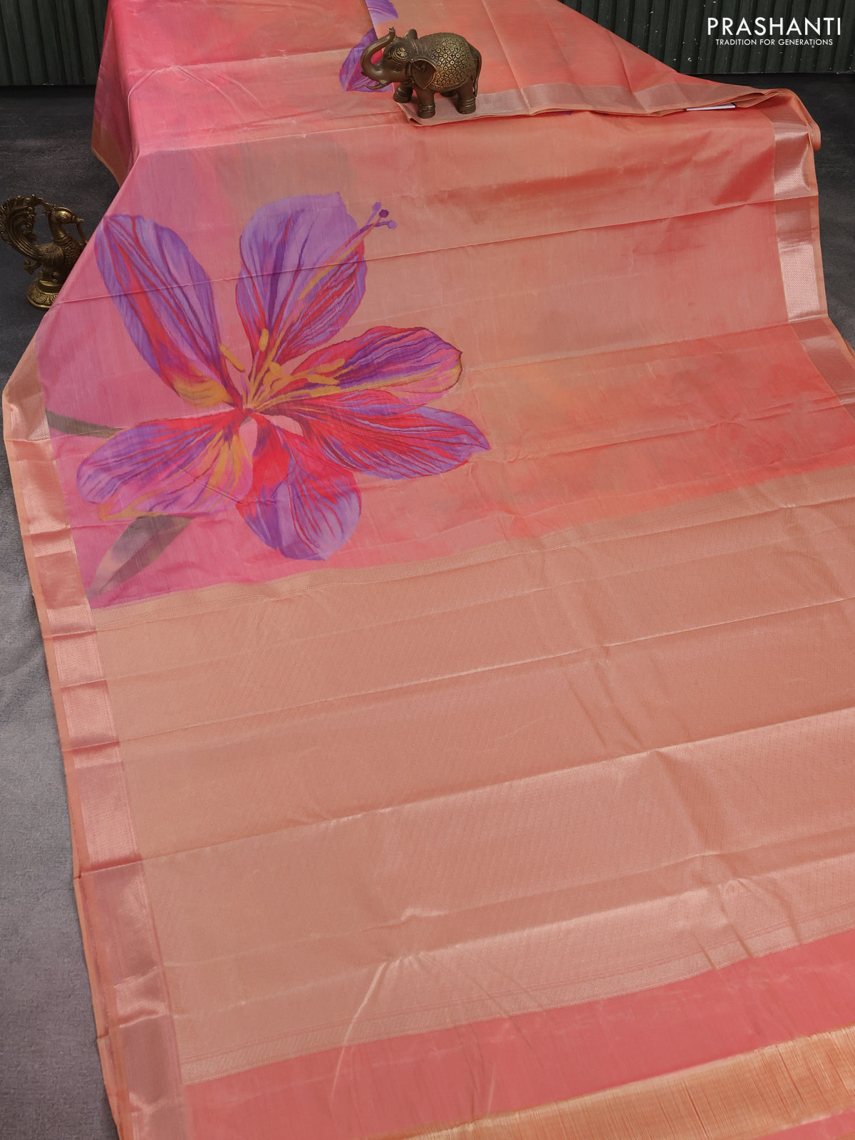 Bangalori semi silk saree dual shade of sandal and pink with allover ikat weaves and zari woven border