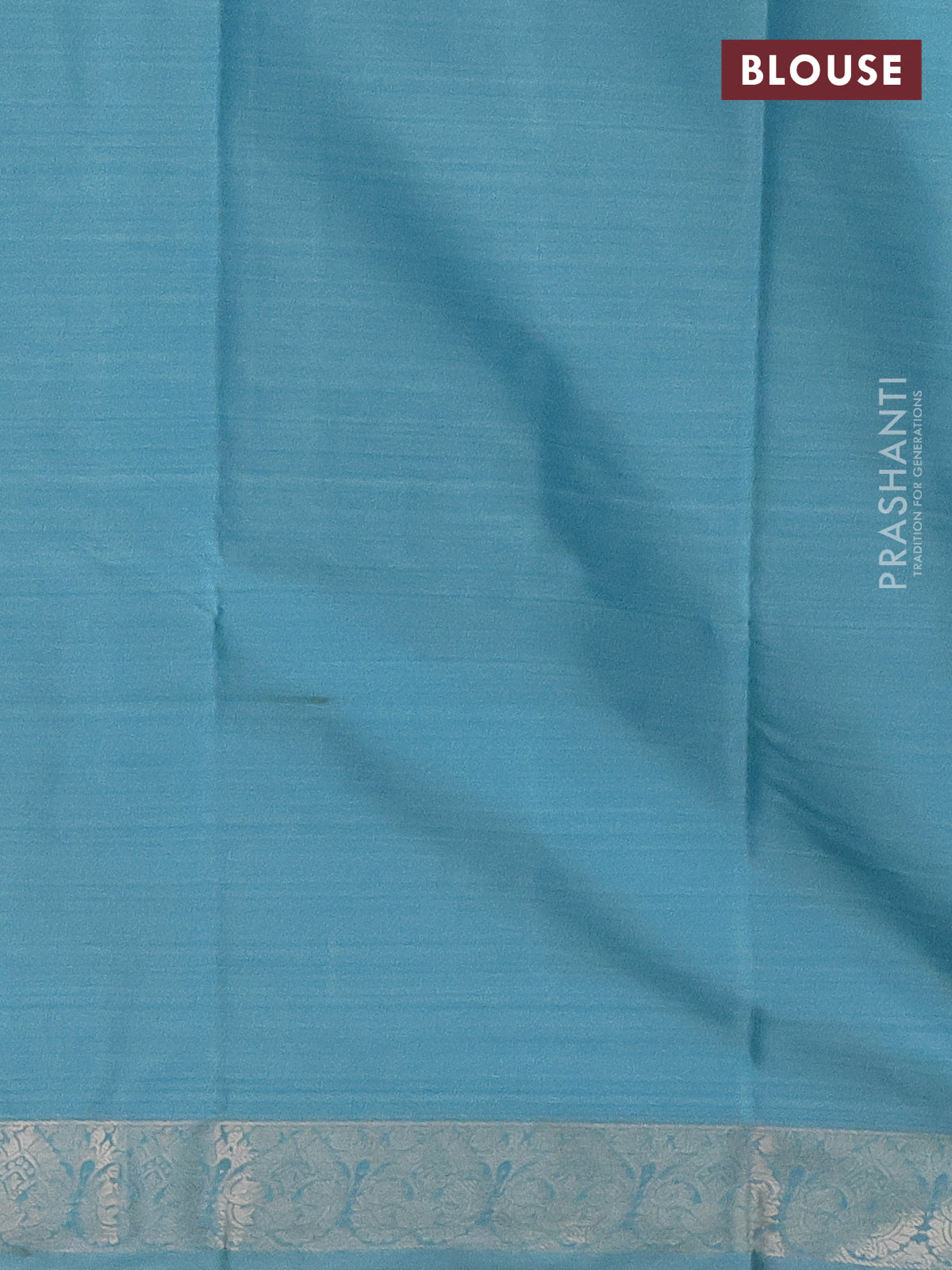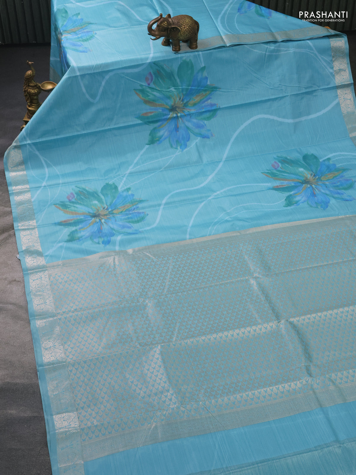 Bangalori semi silk saree light blue with allover ikat weaves and zari woven border