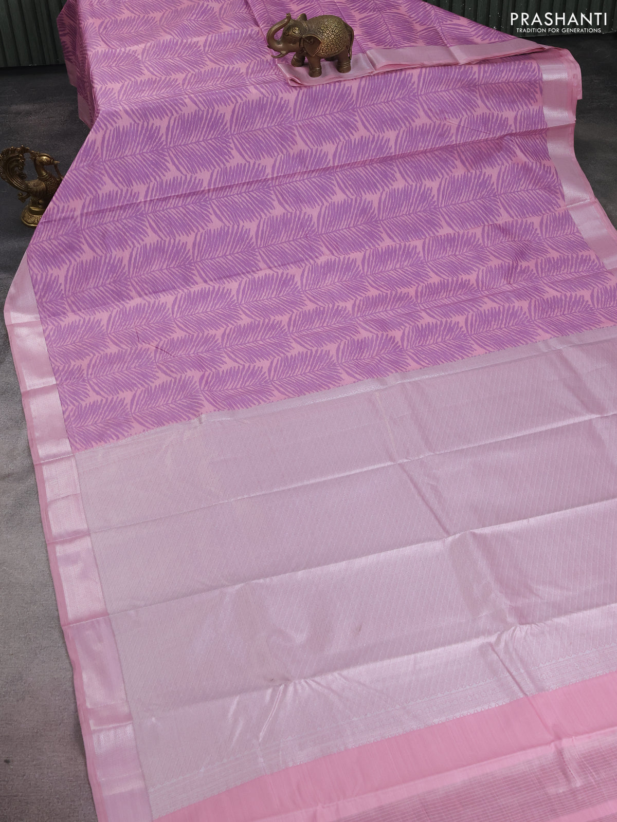 Bangalori semi silk saree peach shade with allover ikat weaves and zari woven border