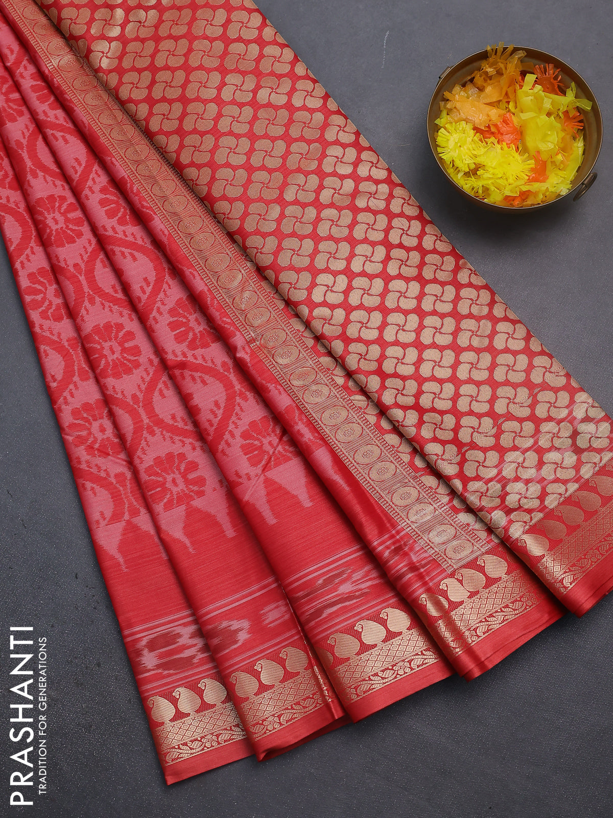 Bangalori semi silk saree red shade and red with allover ikat weaves and zari woven border