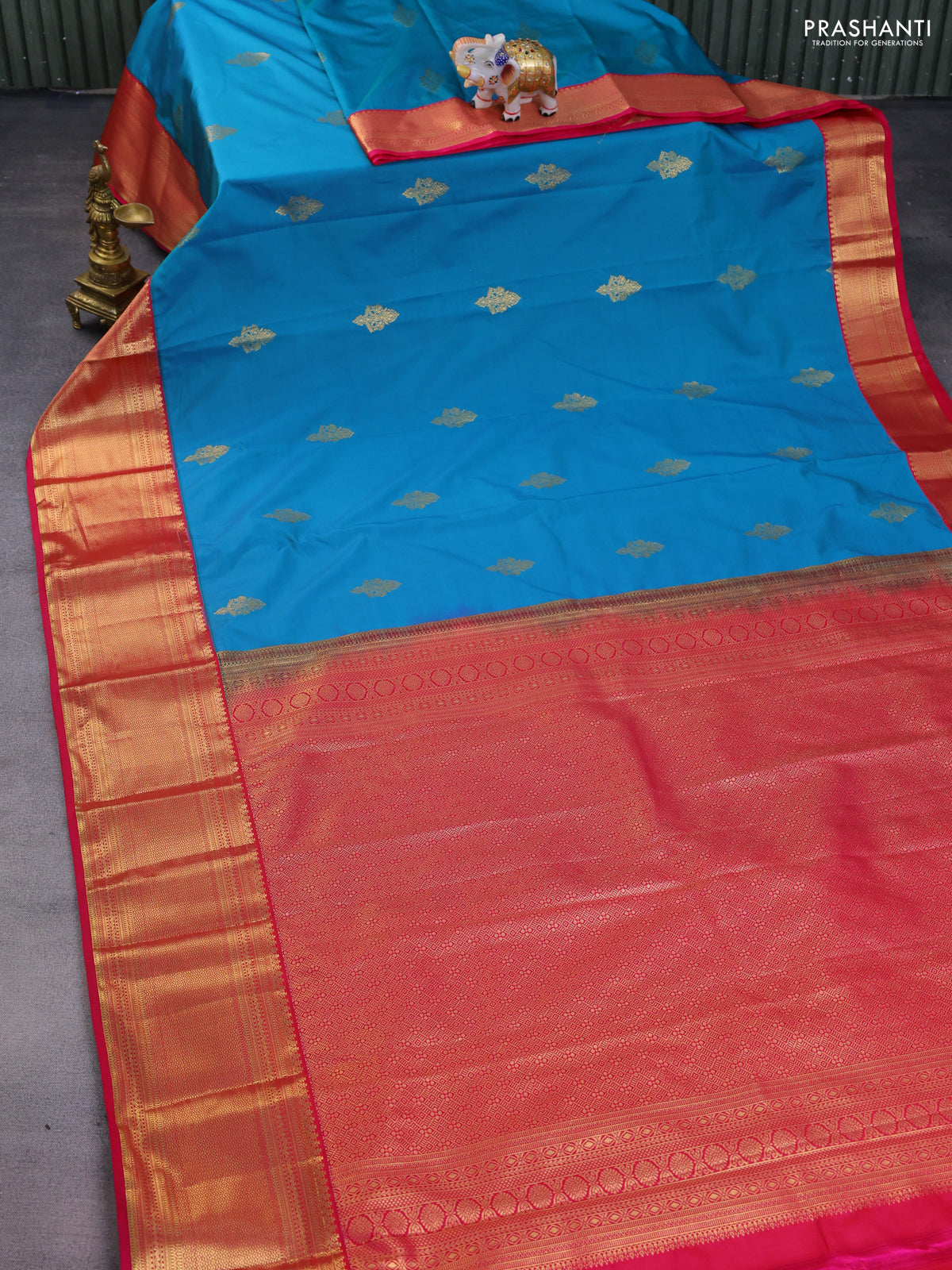 Bangalori silk saree cs blue and pink with zari woven buttas and zari woven border