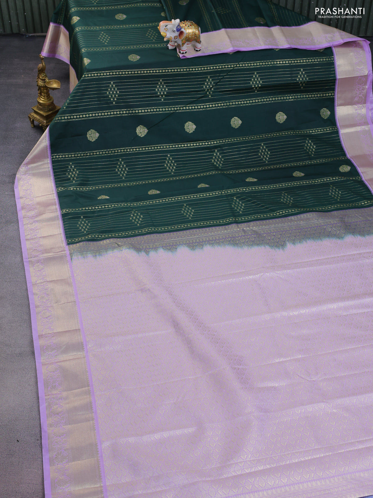 Bangalori silk saree dark green and lavender with allover zari weaves and zari woven border