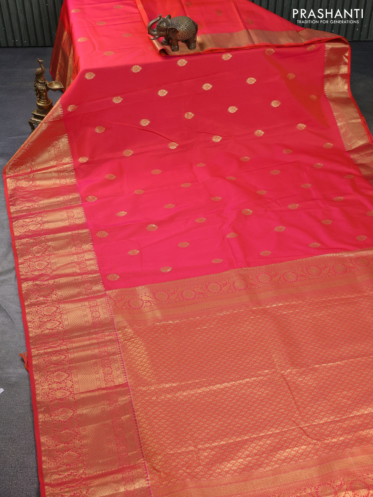 Bangalori silk saree dual shade of pinkish orange with zari woven buttas and long zari woven border