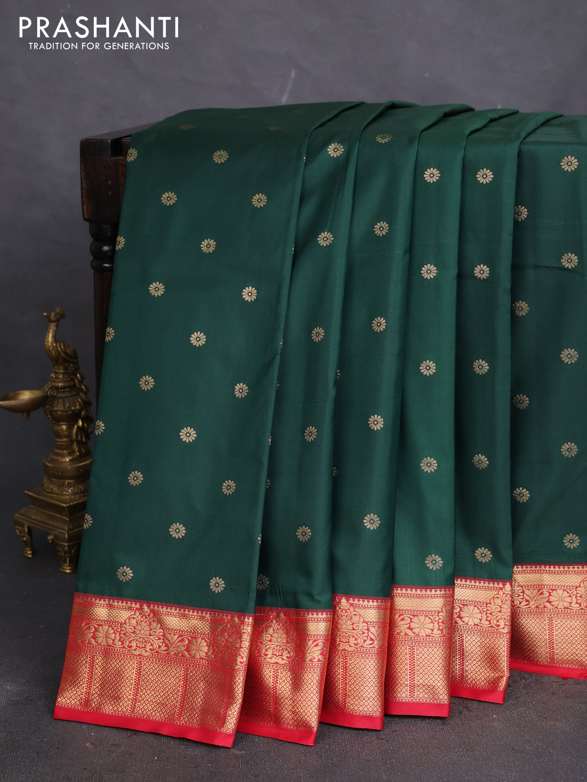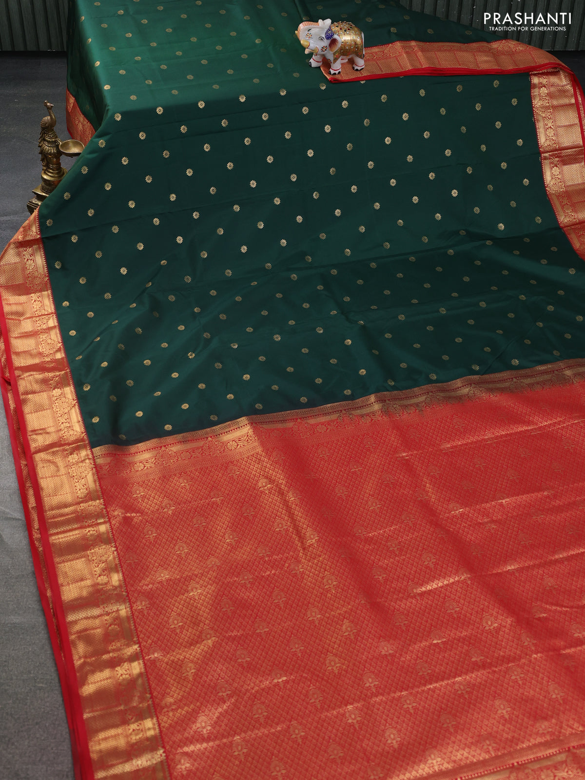 Bangalori silk saree green and red with zari woven buttas and zari woven border