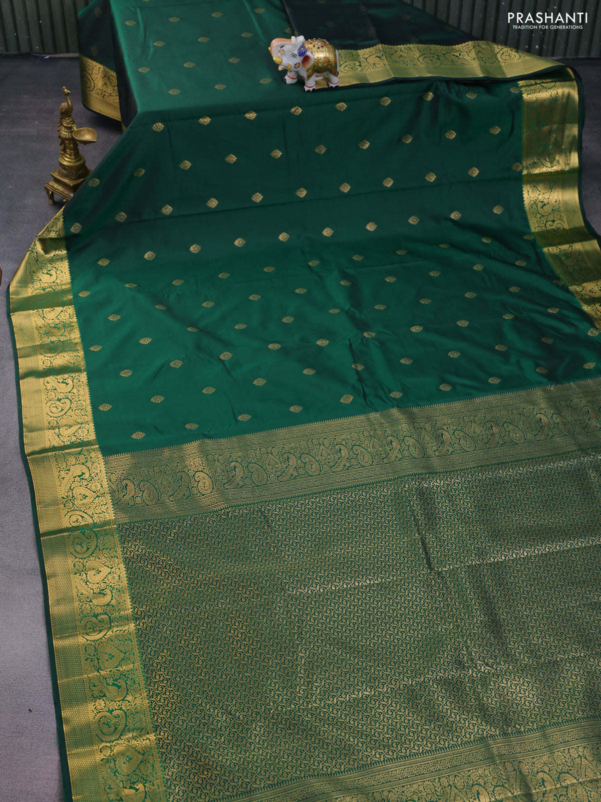 Bangalori silk saree green with zari woven buttas and zari woven border