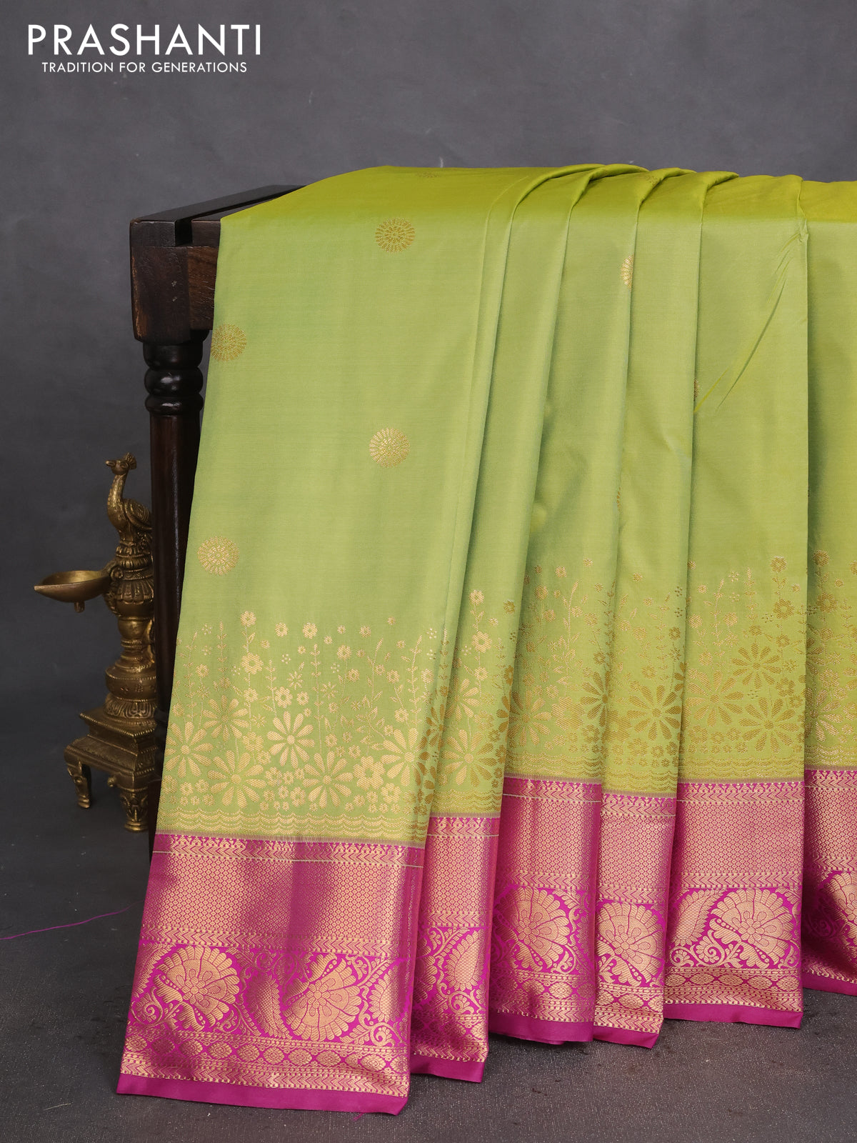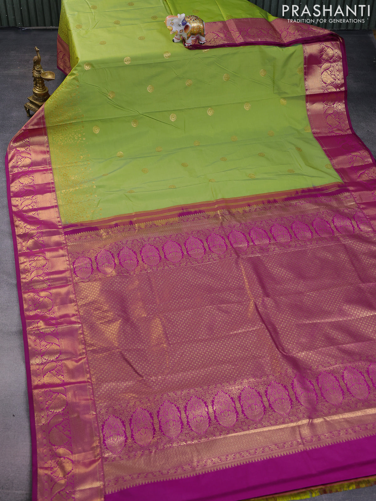 Bangalori silk saree light green and purple with zari woven buttas and zari woven border