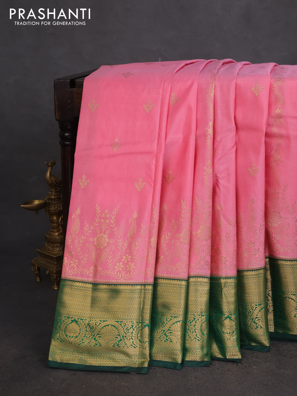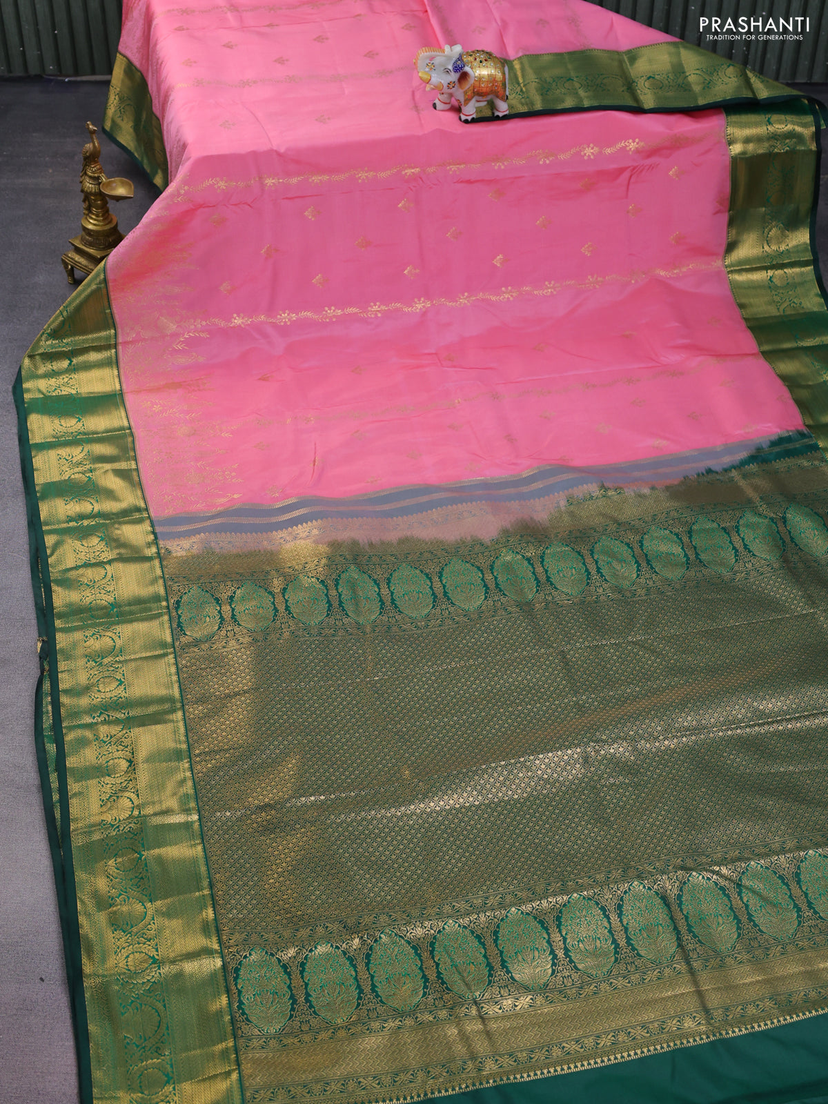 Bangalori silk saree light pink and green with zari woven buttas and zari woven border