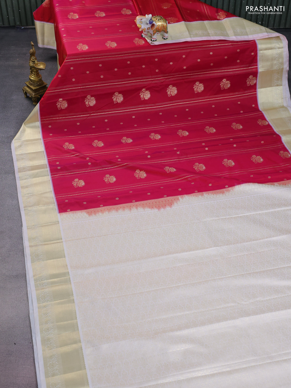 Bangalori silk saree magenta pink and pastel shade with allover zari weaves & buttas and zari woven border
