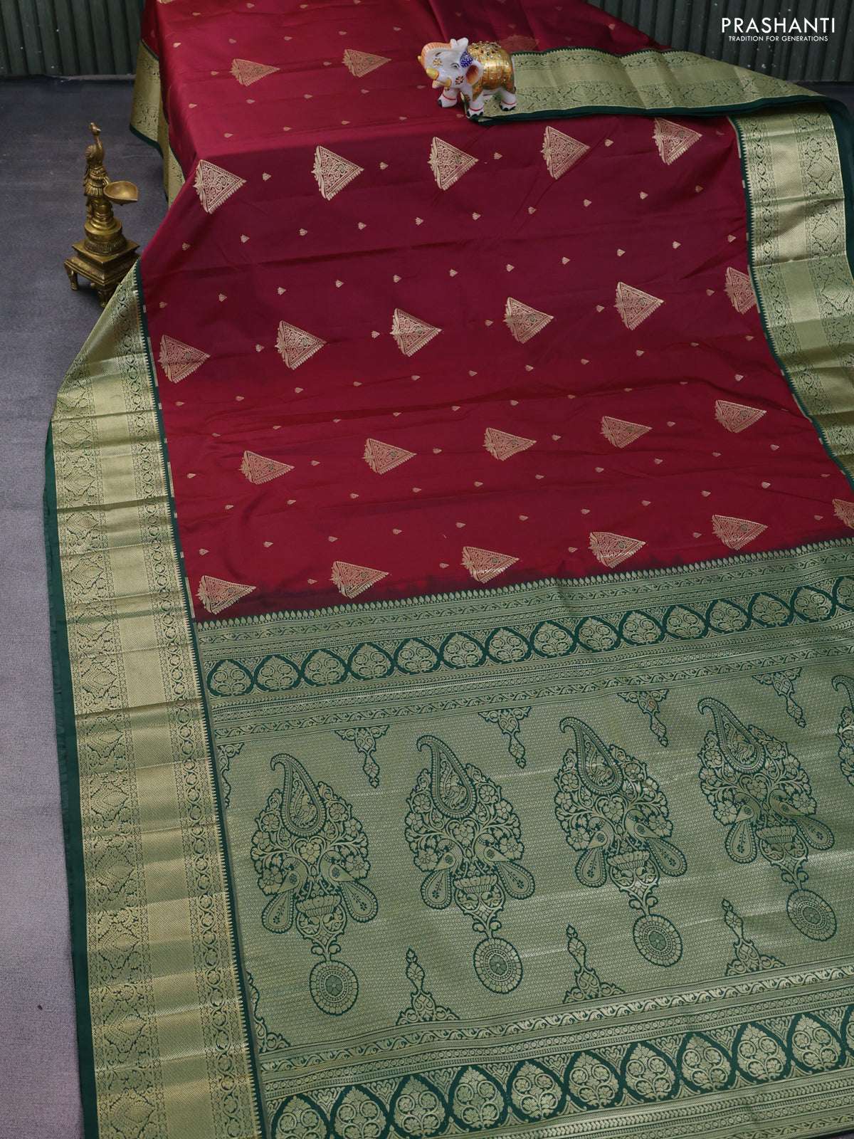 Bangalori silk saree maroon and green with zari woven buttas and zari woven border