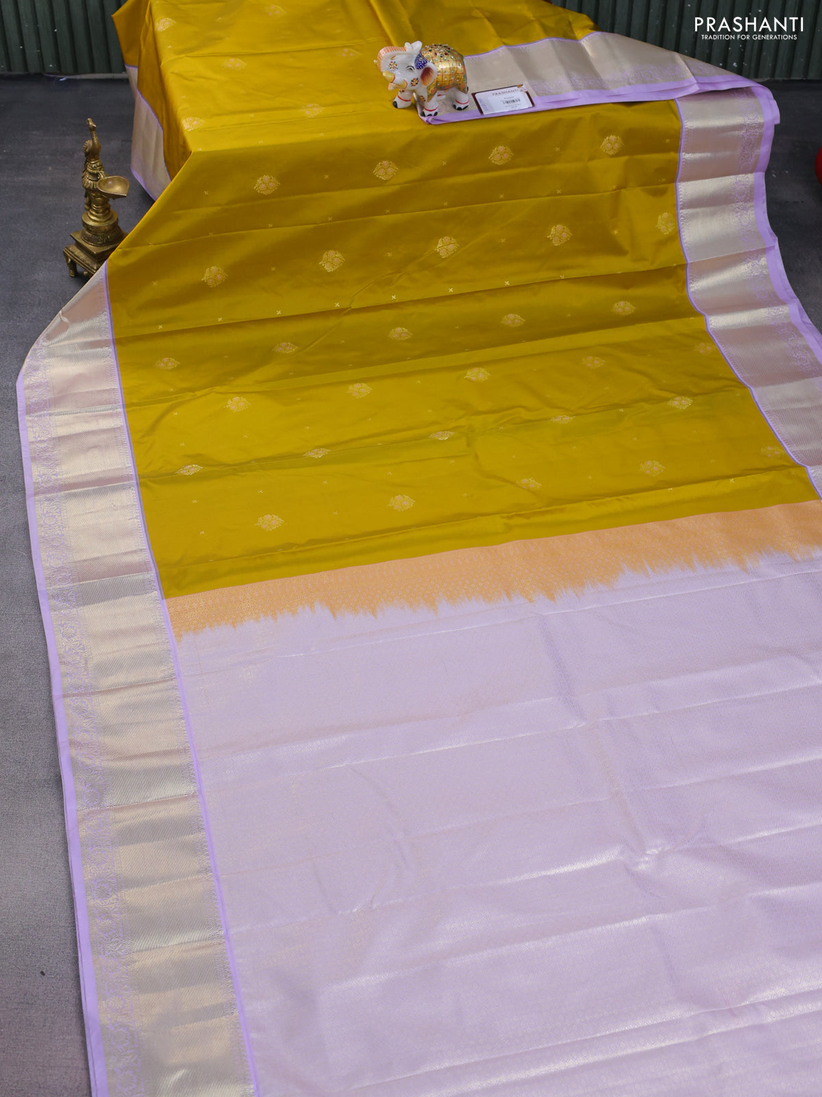 Bangalori silk saree mustard yellow and lavender with zari woven buttas and zari woven border
