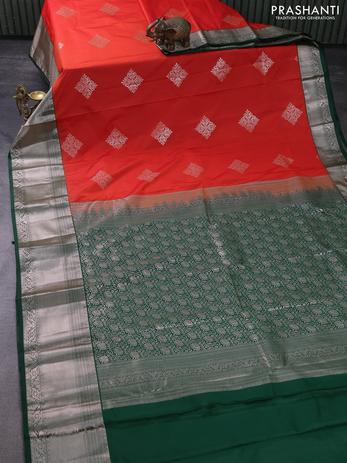 Bangalori silk saree orange and bottle green with zari woven buttas and zari woven border