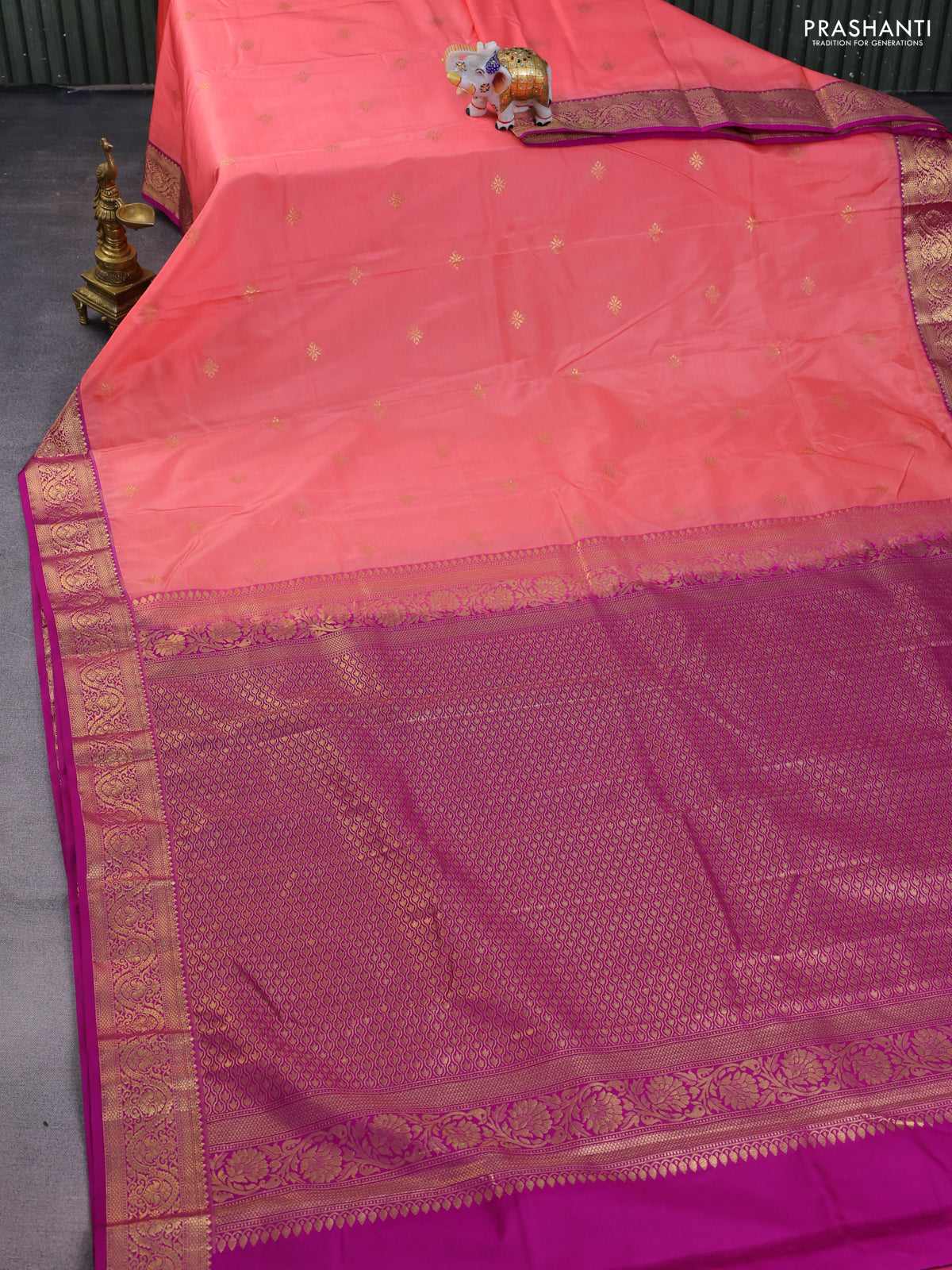 Bangalori silk saree peach orange and purple with zari woven buttas and zari woven border