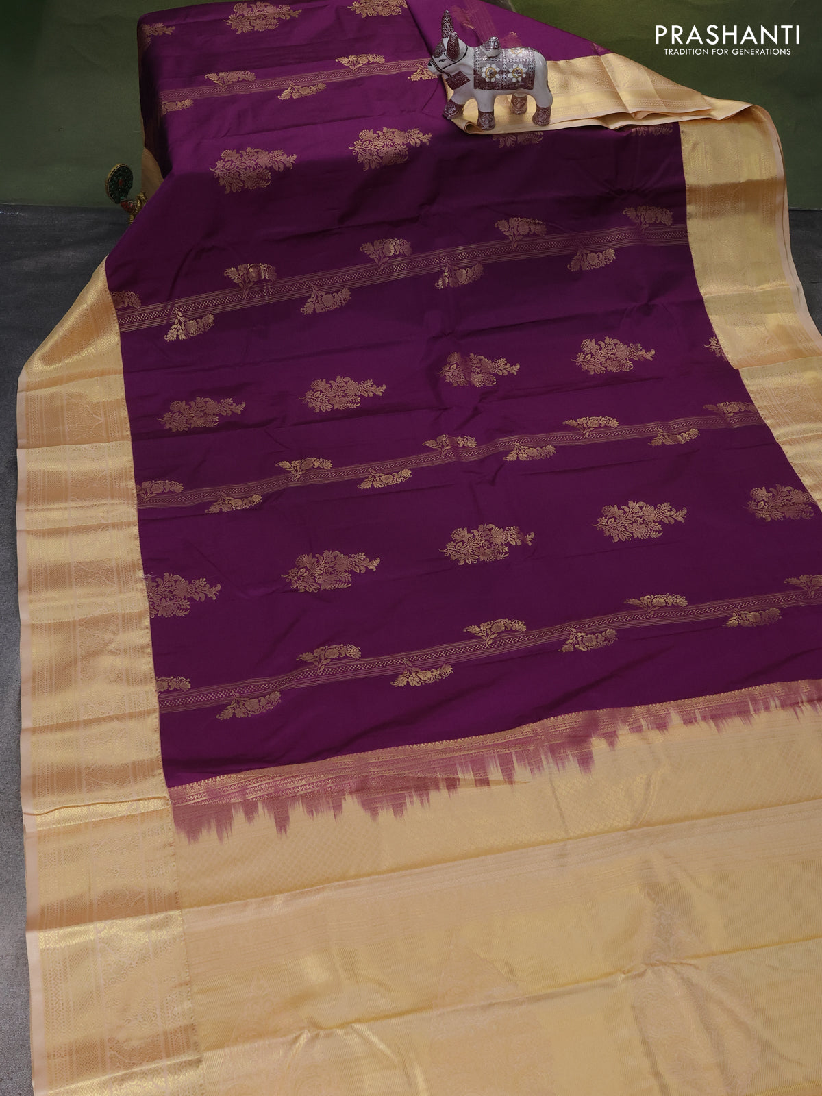 Bangalori silk saree purple and sandal with zari woven buttas and zari woven border