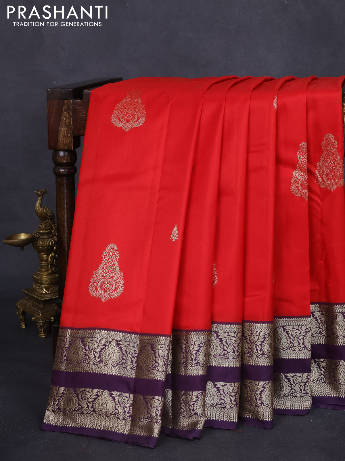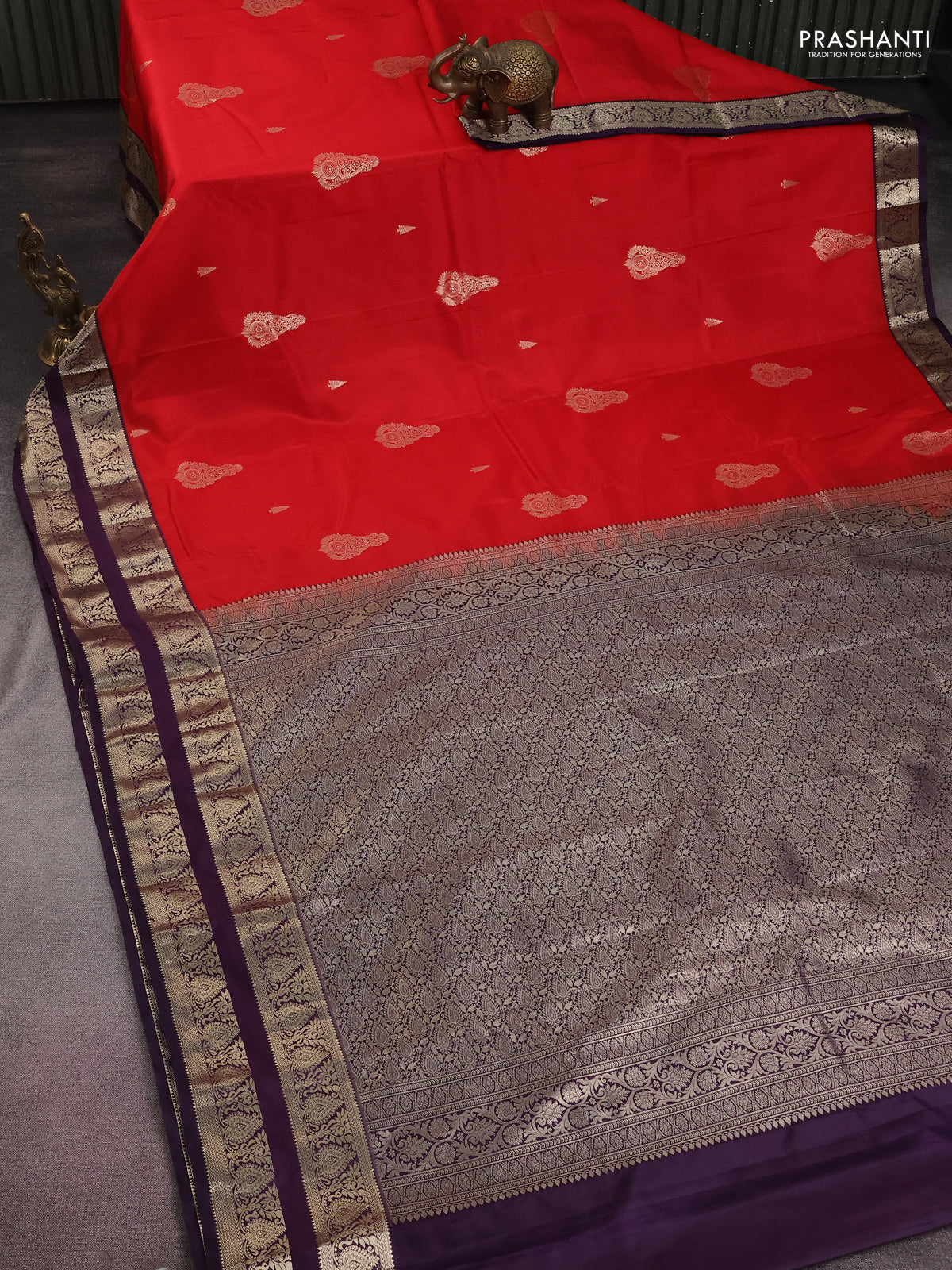 Bangalori silk saree red and deep violet with zari woven buttas and rettapet zari woven border and Butta style