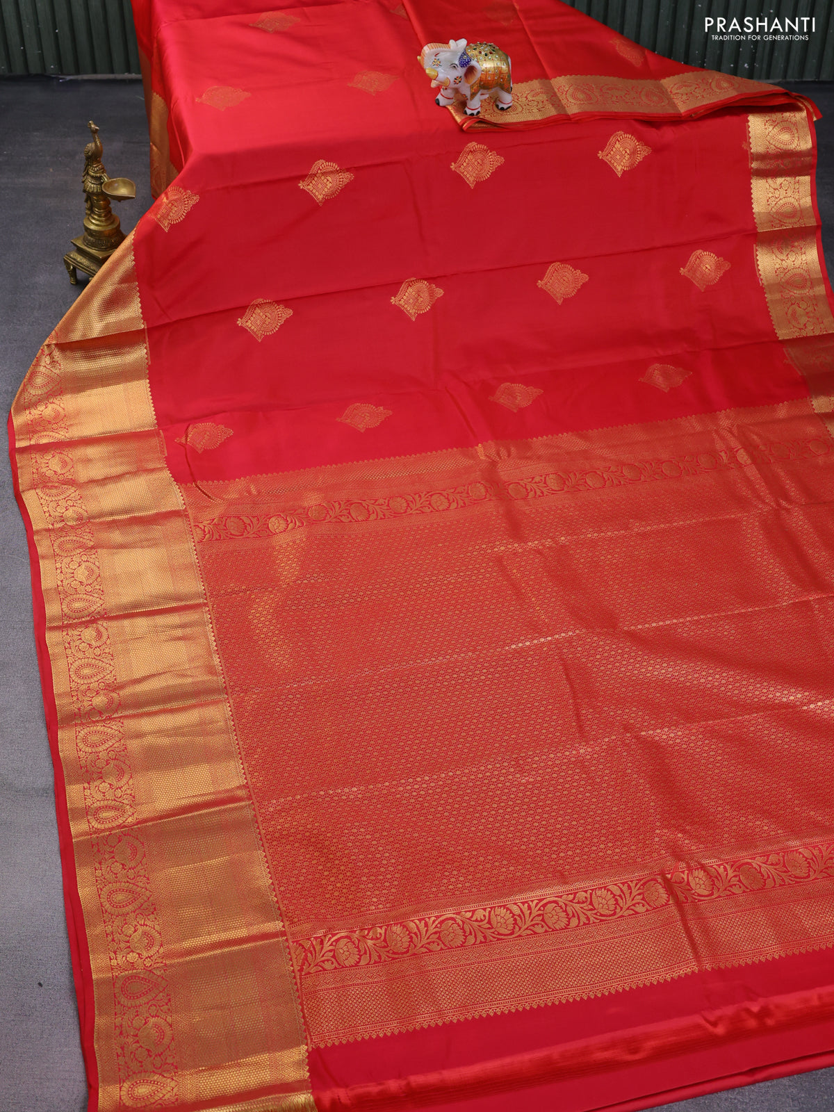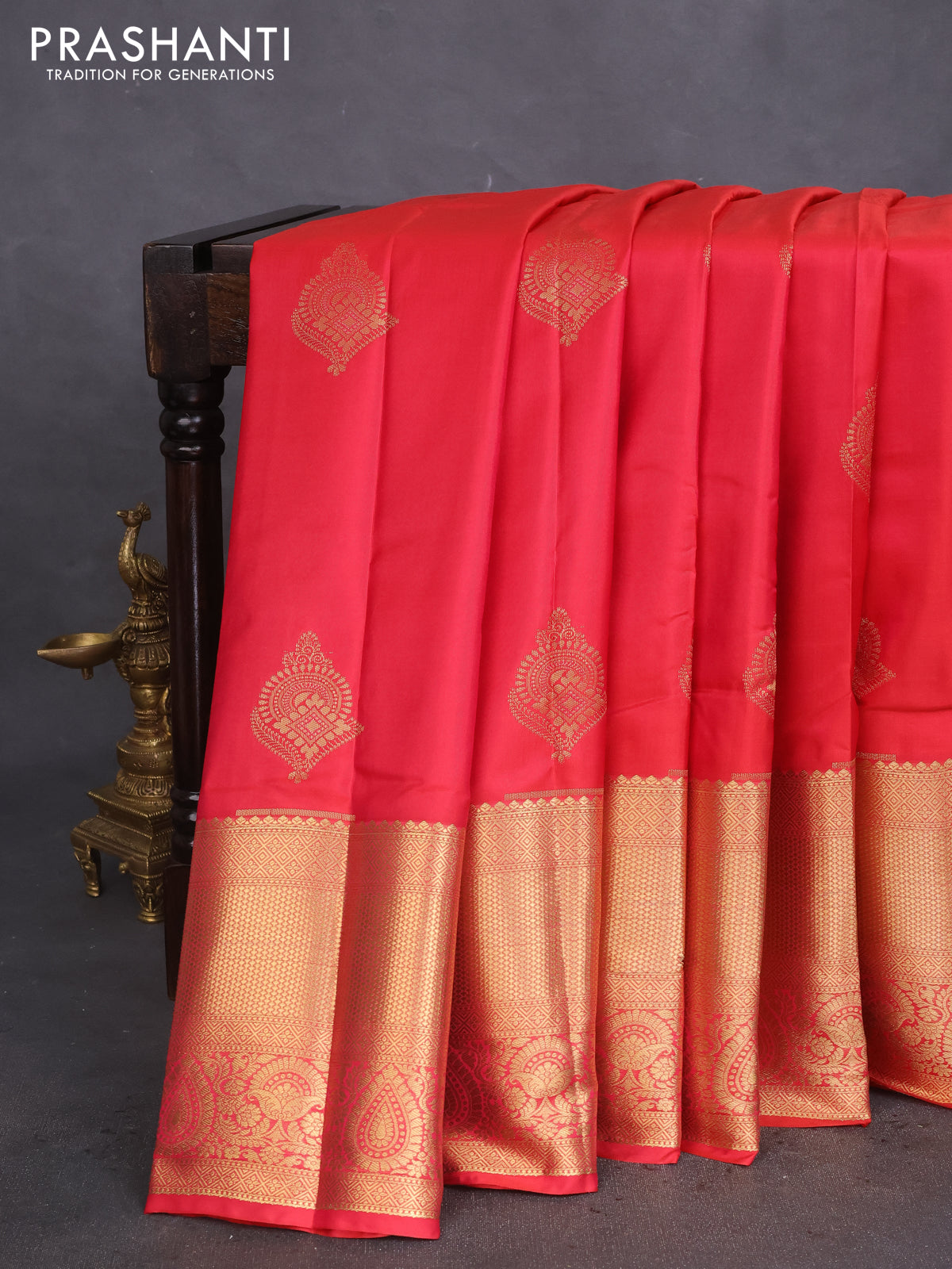 Bangalori silk saree reddish pink with zari woven buttas and zari woven border