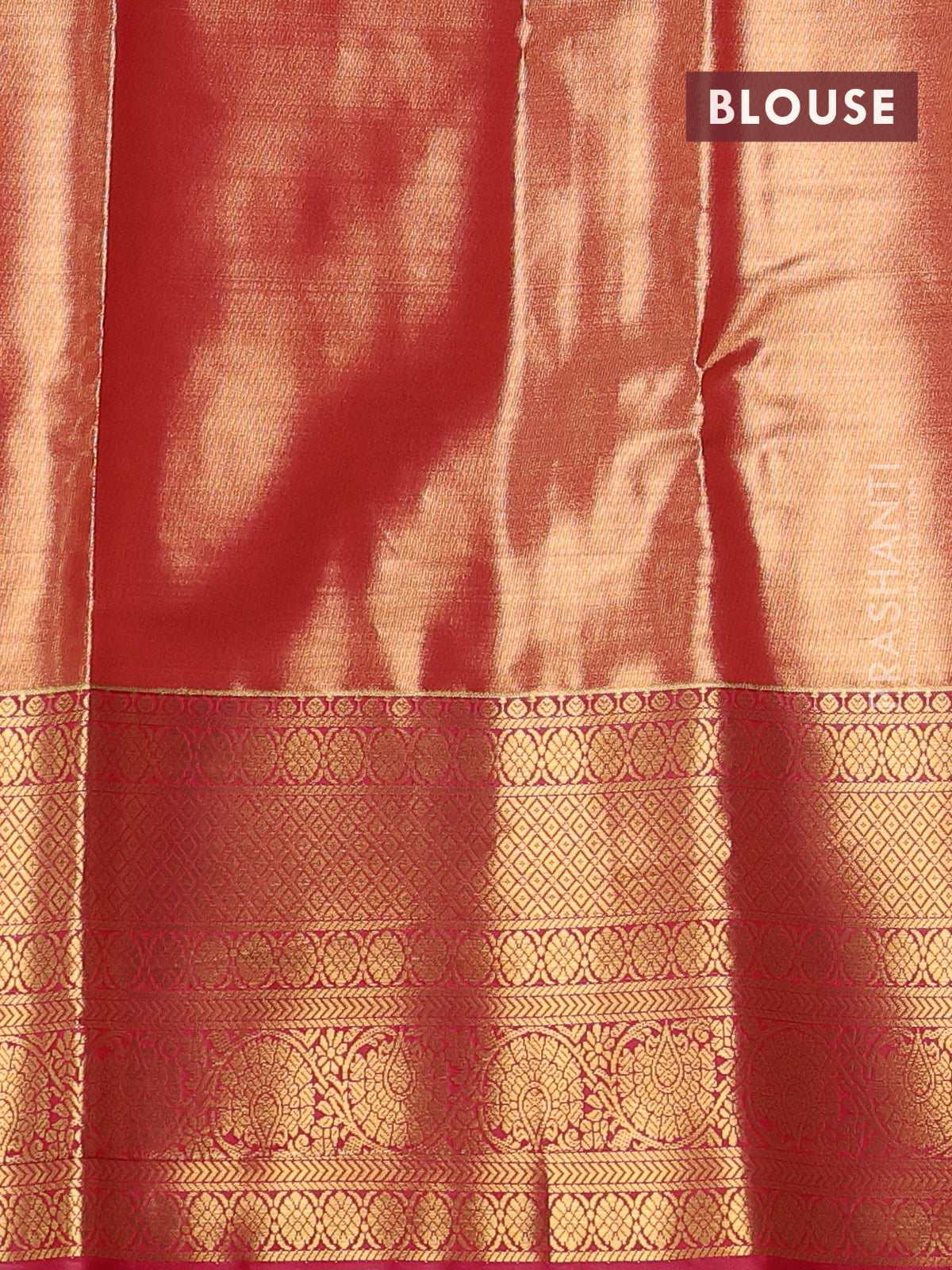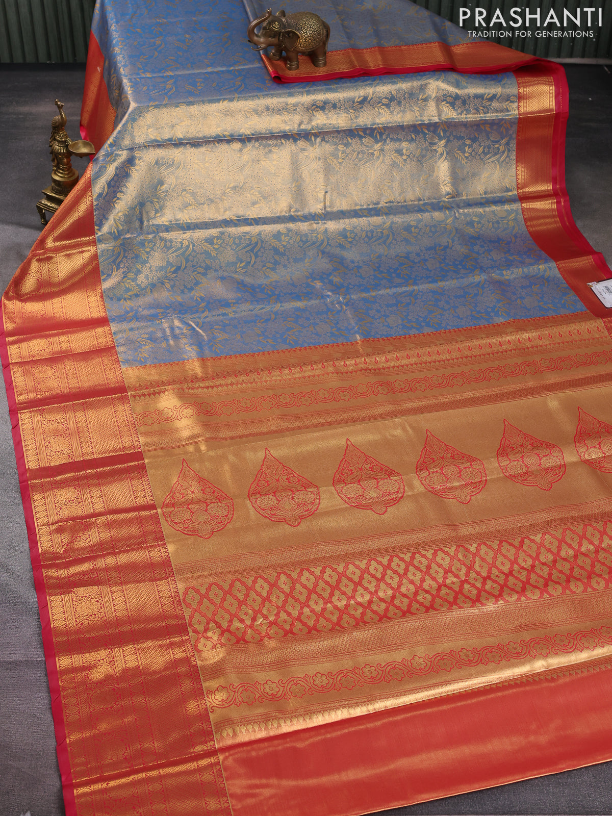 Bangalori tissue silk saree dual shade of blue and pink with allover zari woven brocade weaves and long zari woven border