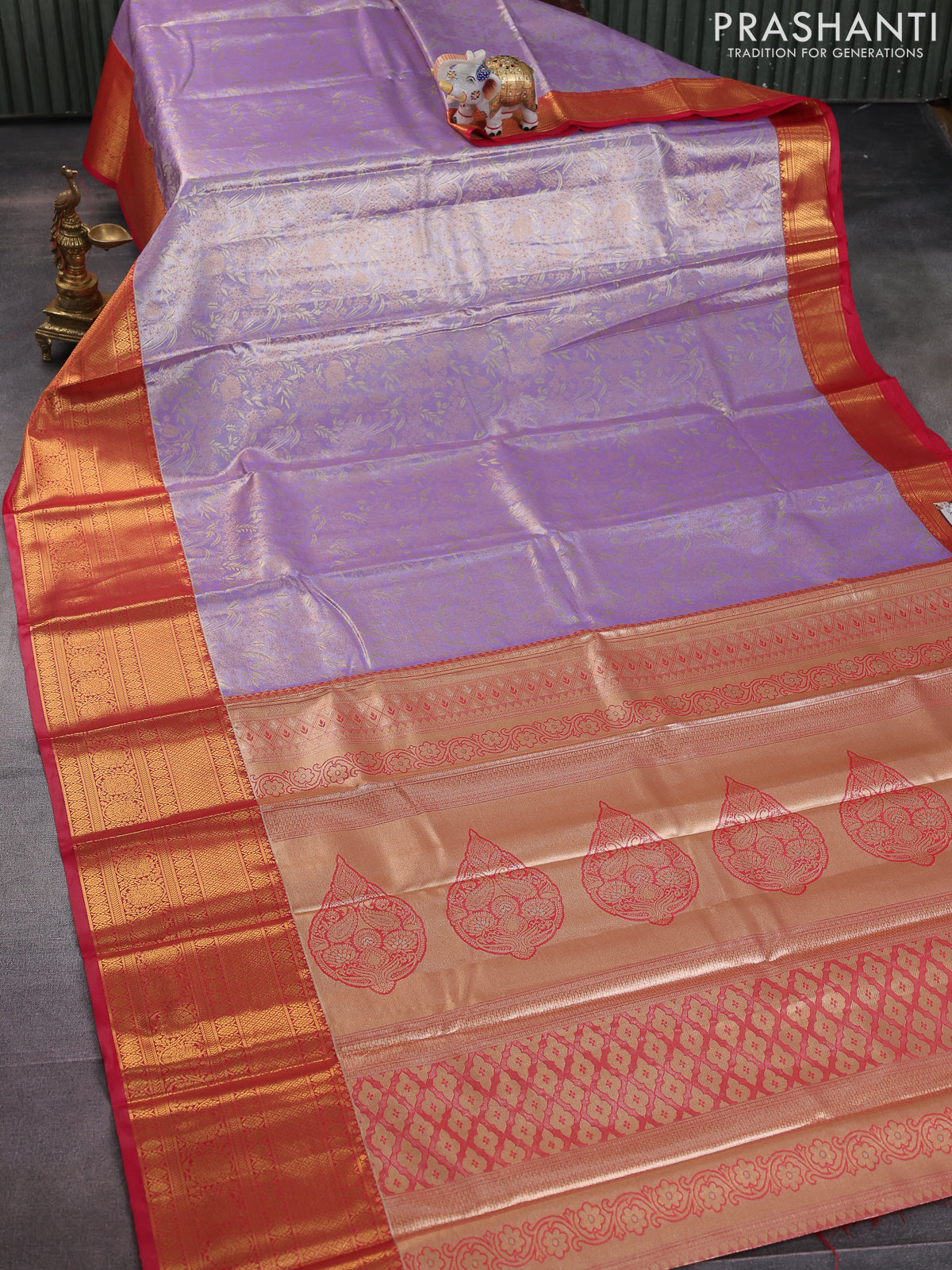 Bangalori tissue silk saree lavender and pink with allover zari woven brocade weaves and long zari woven border
