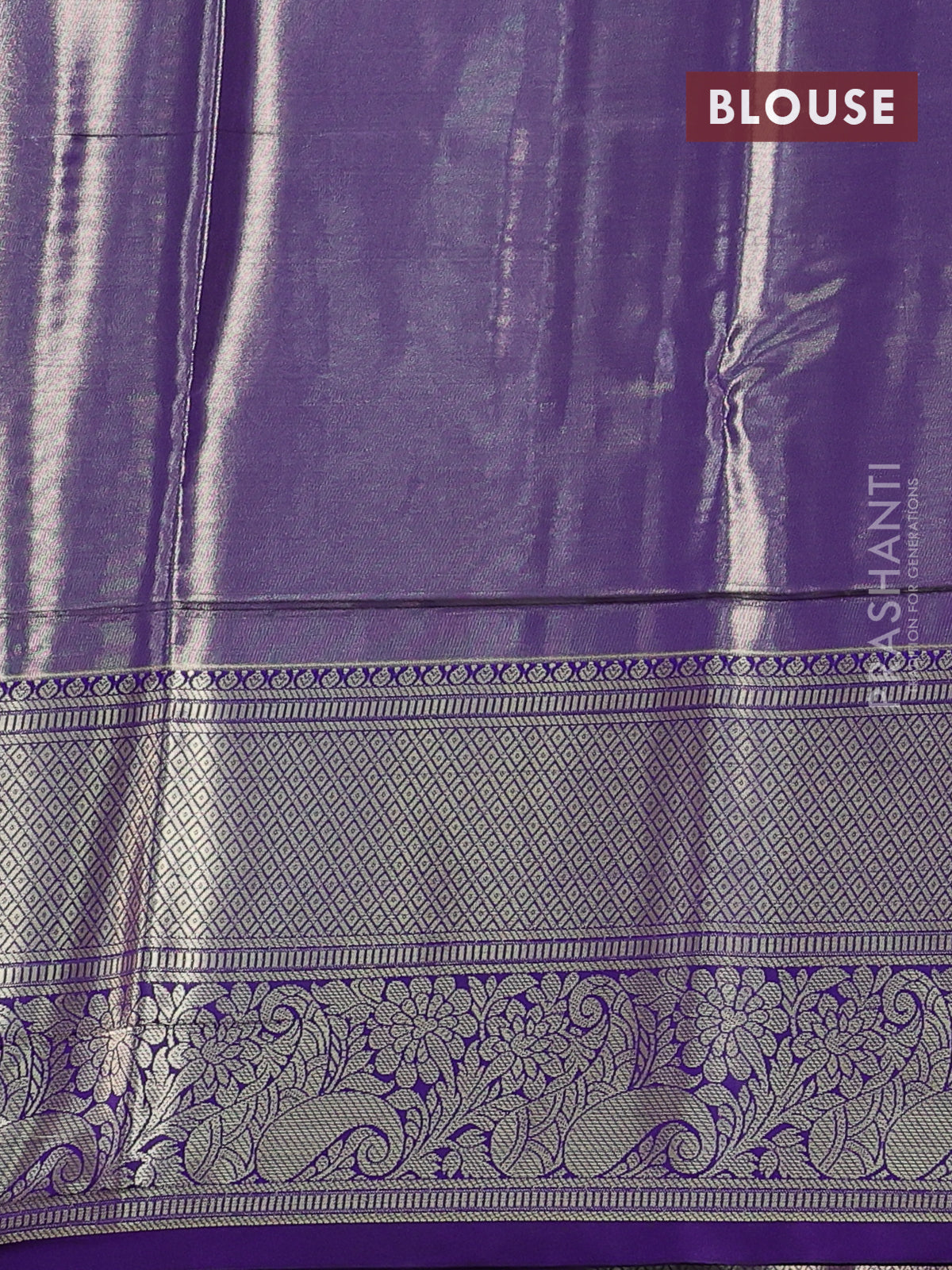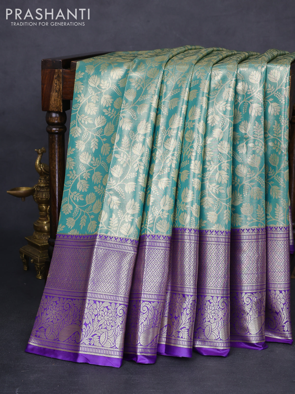 Bangalori tissue silk saree teal green shade and violet with allover zari woven brocade weaves and long zari woven border