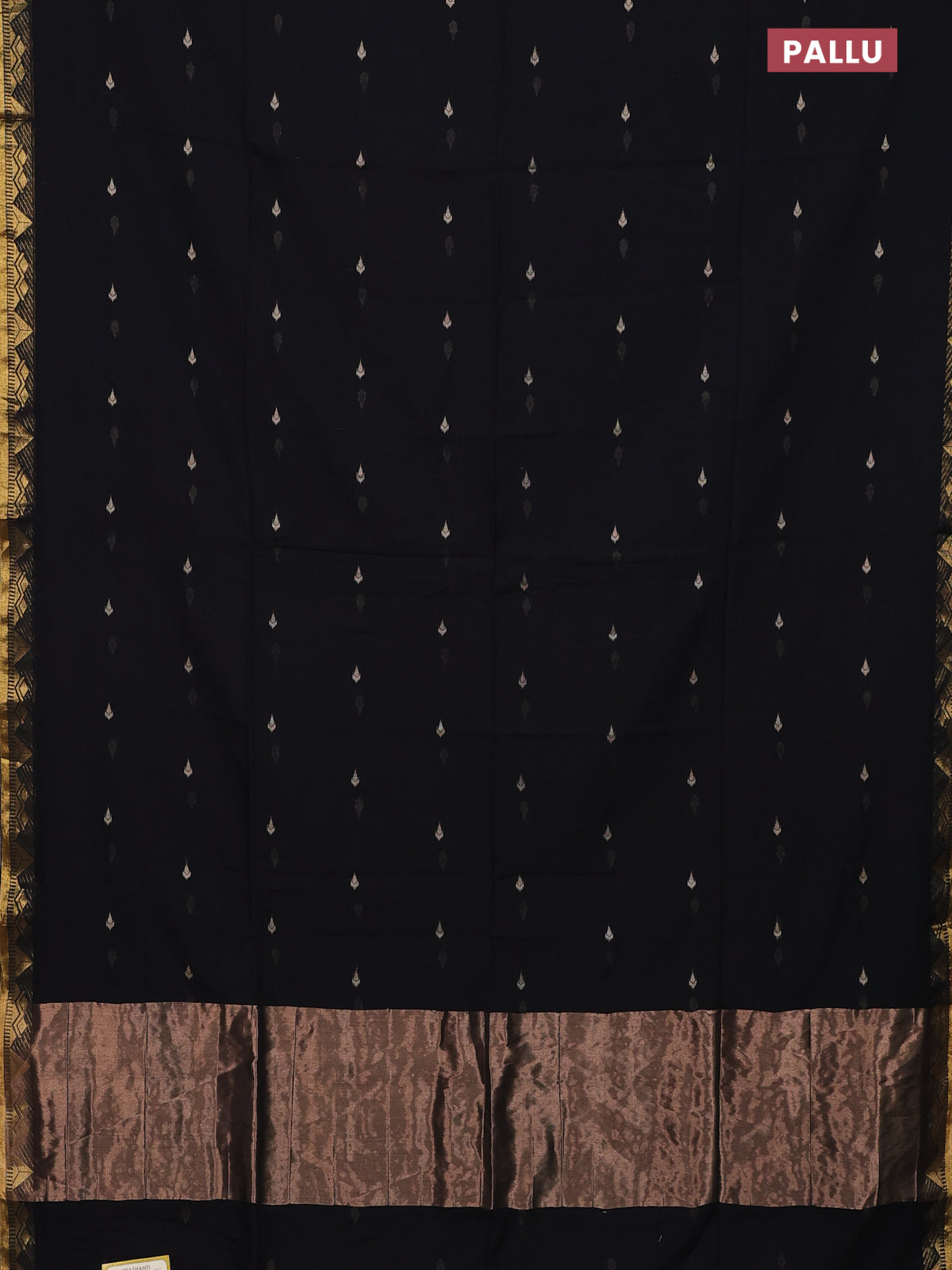 Bengal soft cotton saree black with thread woven buttas and zari woven border