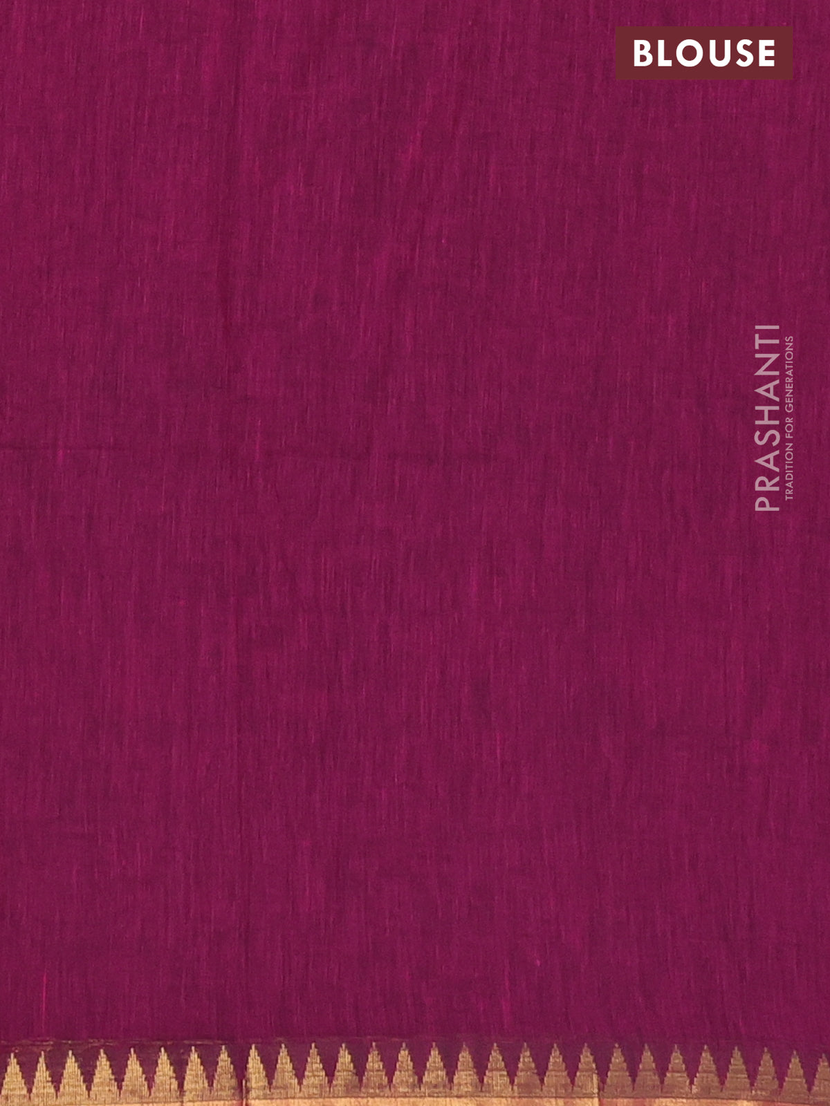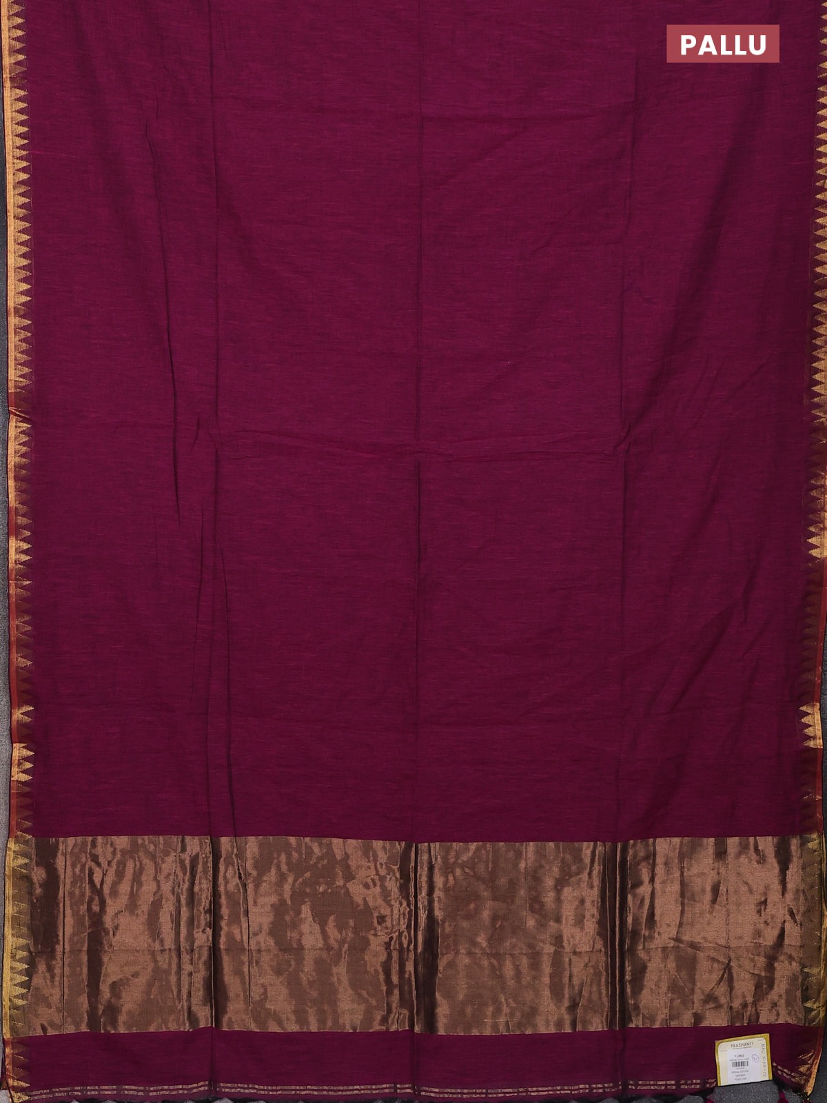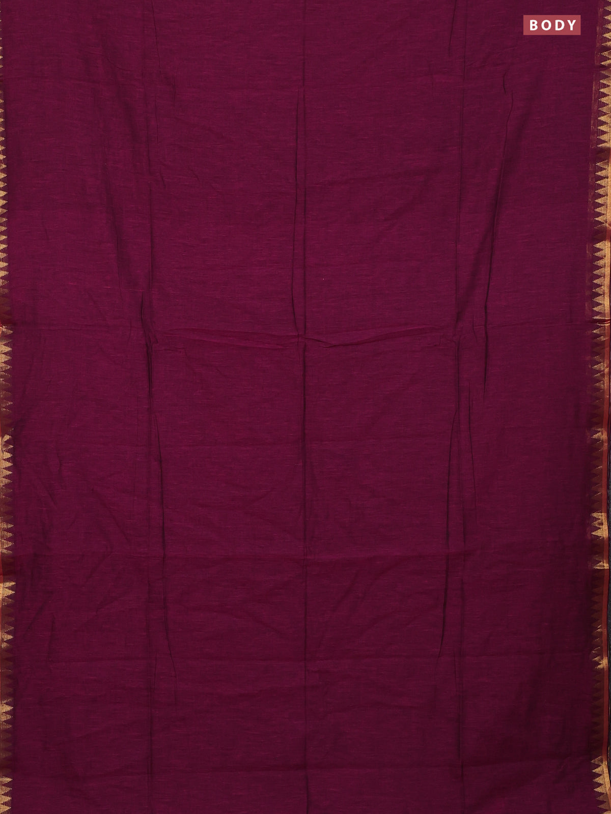 Bengal soft cotton saree dark magenta [ink with plain body and temple design zari woven border